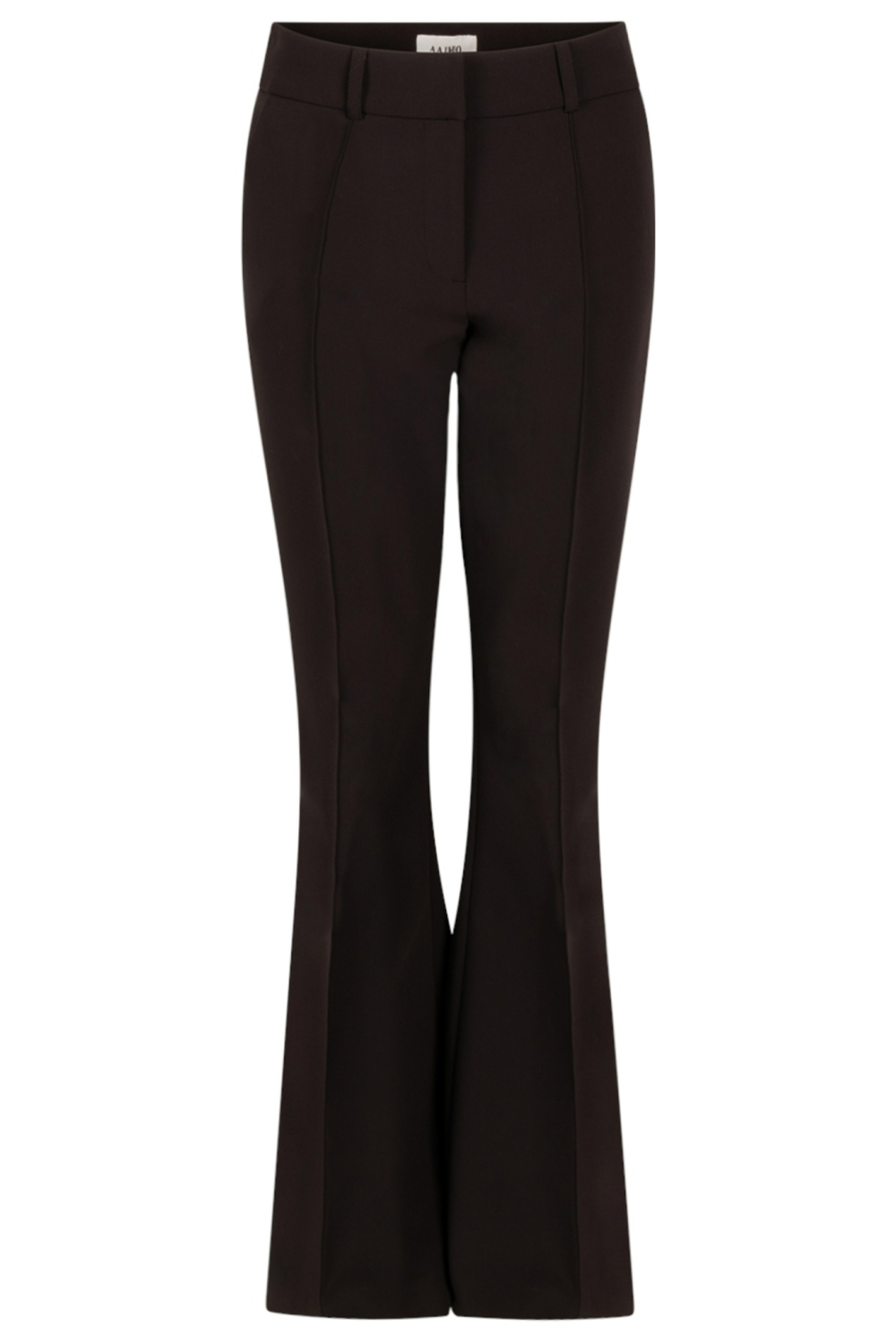 De normale lengte en flared pijpen geven je benen een prachtige lijn en zijn gemakkelijk te combineren met diverse outfits. Of je nu kiest voor een elegante blouse of een casual top, deze broek past zich moeiteloos aan. De zwarte kleur maakt het eenvoudig om te matchen met verschillende kleuren en materialen, zodat je altijd een stijlvolle look kunt creëren. Voeg deze klassieke Aaiko broek toe aan je collectie voor een tijdloze en veelzijdige stijl.