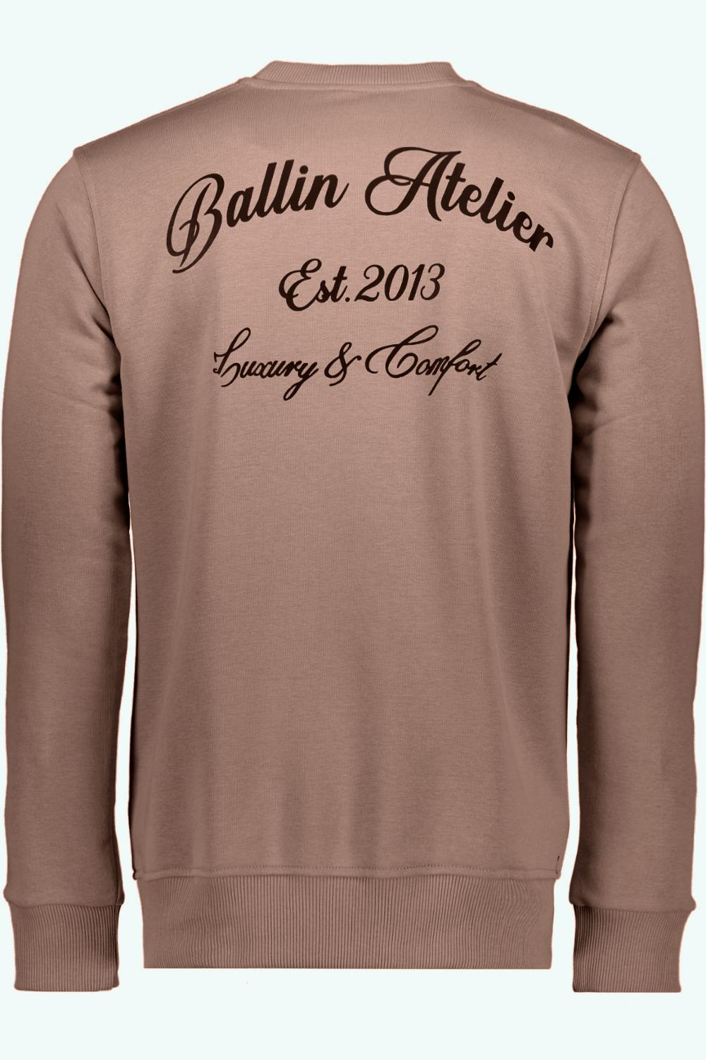 Aan de achterzijde prijkt er een stijlvolle typografische print met de tekst "Ballin Atelier, est. 2013" en "Luxury & Comfort," wat deze sweater een unieke uitstraling geeft. De lange mouwen en normale lengte maken het een uitstekende keuze voor de herfst. Je kunt hem makkelijk combineren met een jeans voor een ontspannen look, of met een chino voor een iets meer formele setting. Of je nu in de stad bent of thuis ontspant, deze sweater is jouw nieuwe favoriete seizoensitem.