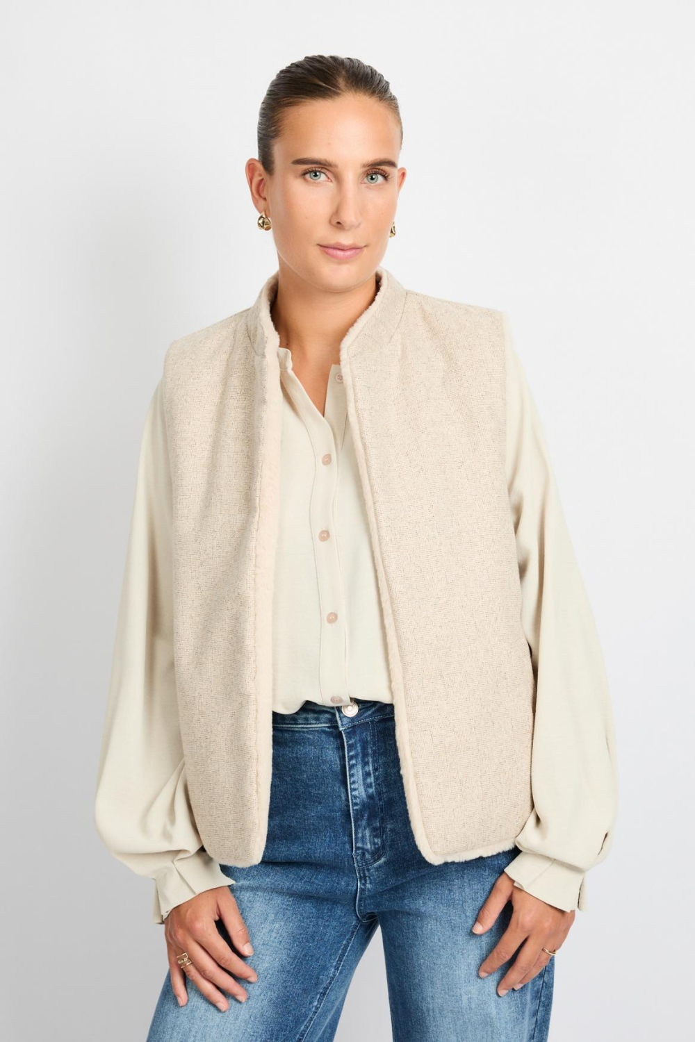 Het gilet heeft handige steekzakken voor extra functionaliteit en is volledig gevoerd met polyester, wat zorgt voor extra warmte tijdens koude dagen. De mouwloze constructie maakt het eenvoudig om verschillende lagen eronder te dragen, waardoor het perfect is voor de winterse laagjeslook. Combineer het met een blouse en jeans voor een casual en toch verzorgde uitstraling. Of je nu een wandeling maakt of een informele bijeenkomst bijwoont, dit gilet past bij elke casual gelegenheid.