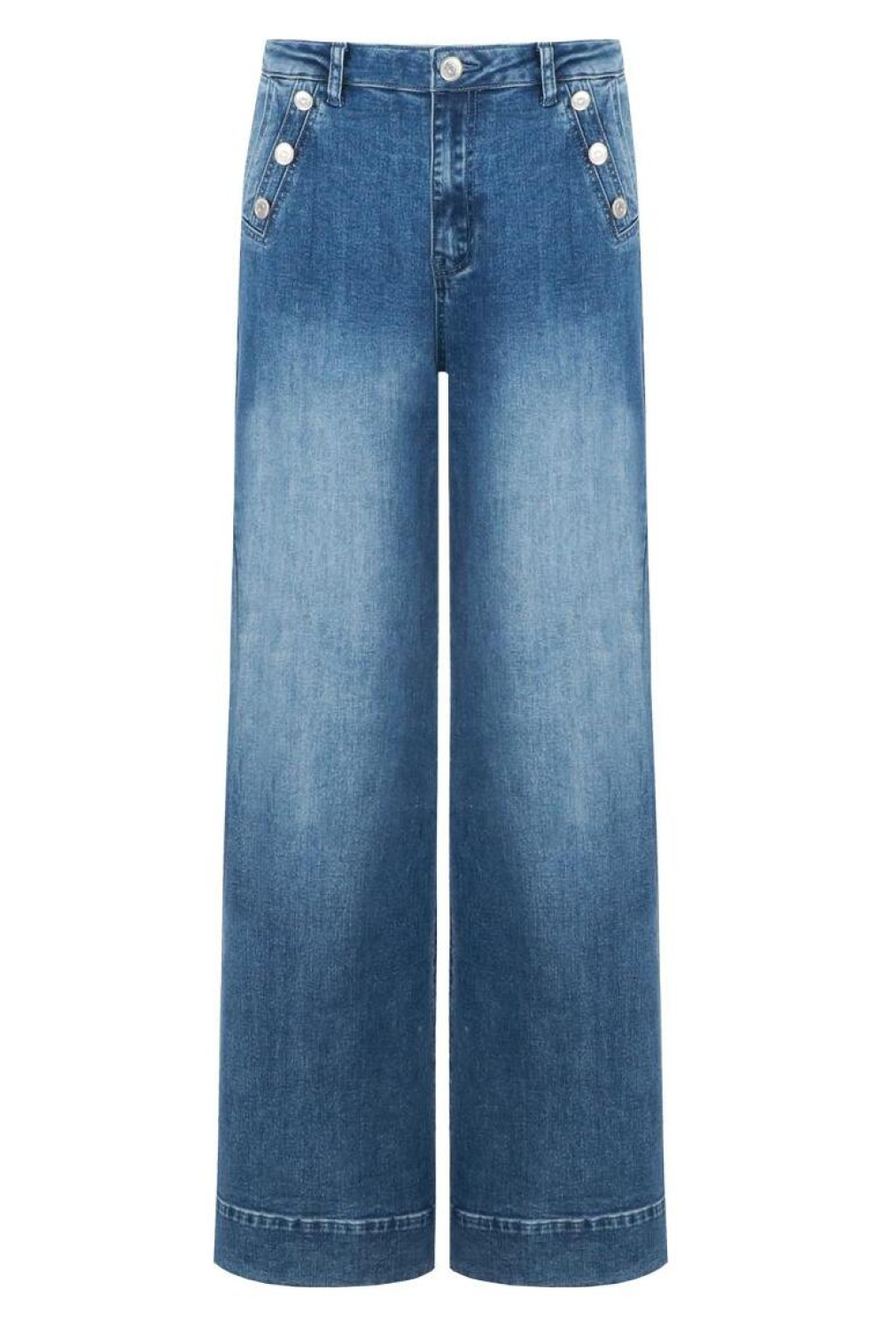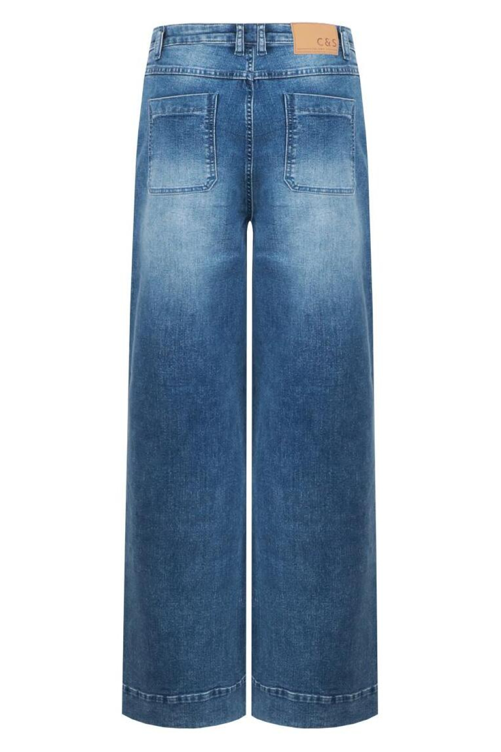 Deze C&S The Label wide leg jeans in de kleur 903 DENIM MID BLUE is een stijlvolle keuze voor iedere garderobe. De hoge taille en de comfortabele pasvorm maken het een veelzijdig stuk dat je makkelijk kunt stylen met verschillende tops. De jeans heeft een used washed look, wat zorgt voor een moderne en casual uitstraling. Dankzij de steekzakken en de detailrijke knoopsluiting aan de voorzijde, krijgt de broek een speelse en unieke twist.