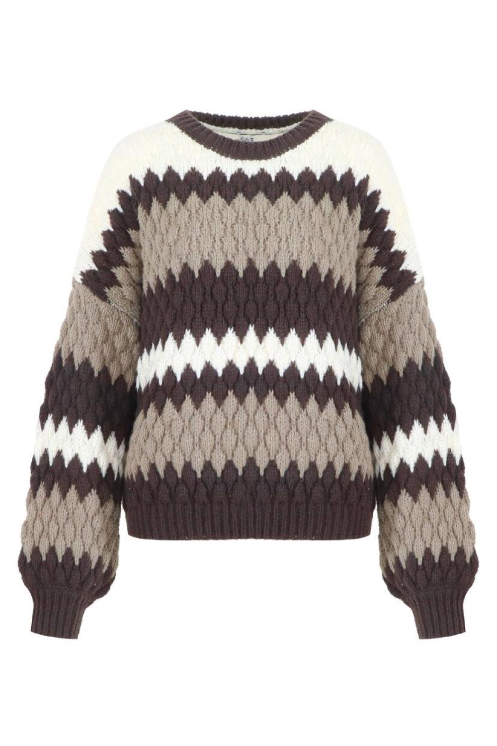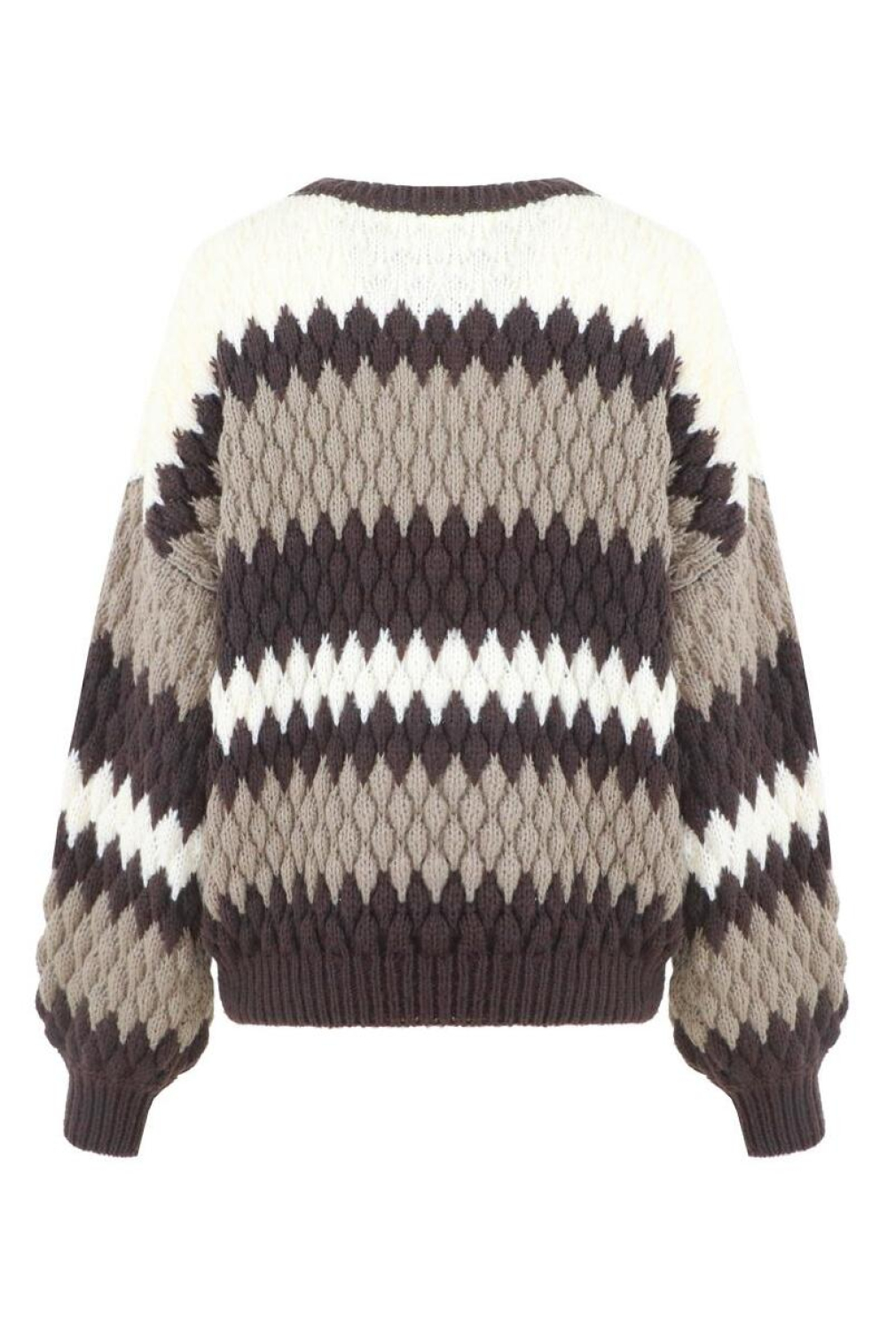 Deze charmante trui van C&S The Label, onderdeel van hun wintercollectie, biedt jou een ontspannen stijl die niet in je garderobe mag ontbreken. De trui heeft een relaxed fit en is gemaakt van 100% polyester, wat zorgt voor een warme en comfortabele pasvorm in de koude maanden. De ronde halslijn en lange mouwen voegen klassieke details toe aan dit modieuze stuk, terwijl het speelse structuurpatroon in aarde- en wittinten een visueel aantrekkelijke look creëert. Een veelzijdige optie voor verschillende gelegenheden, deze knitwear trui combineert comfortabel met stijlvol. Perfect voor een dagje uit in de stad of een gezellige avond bij de open haard. Je kunt de trui combineren met een lichte pantalon voor een casual chic uitstraling of met een donkere jeans voor een meer ontspannen look. Of je nu een middag met vrienden doorbrengt of een casual werkdag hebt, deze trui voegt moeiteloos een vleugje klasse toe aan jouw winteroutfit.