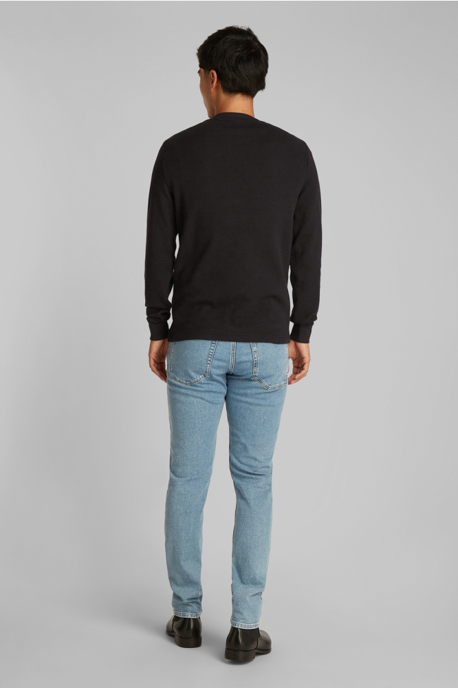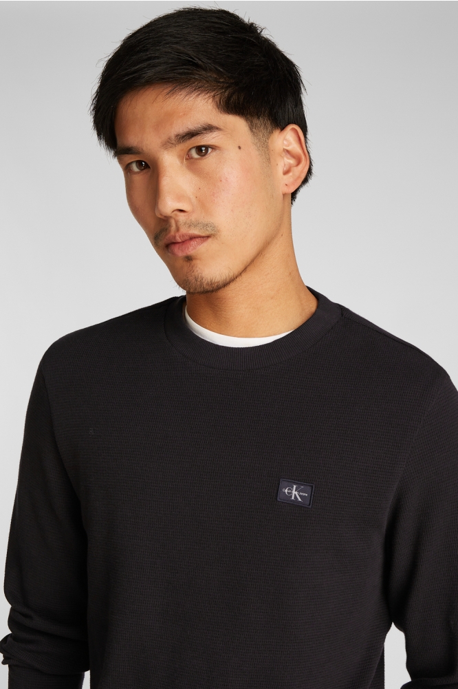 Deze Calvin Klein sweater in CK Black is een stijlvolle toevoeging aan je casual outfit. De sweater heeft een regular fit en is gemaakt van 100% katoen, wat voor extra comfort zorgt tijdens de koude winterdagen. De ronde hals en lange mouwen geven het een klassieke uitstraling, terwijl het subtiele structuurpatroon zorgt voor een moderne twist. Het logo op de borst voegt een verfijnd detail toe, waardoor je outfit net dat beetje extra krijgt. Dankzij de normale lengte is deze sweater gemakkelijk te combineren met zowel jeans als een nette broek, wat hem geschikt maakt voor verschillende gelegenheden. Of je nu een ontspannen dag thuis hebt of een casual afspraak, deze sweater biedt de perfecte balans tussen comfort en stijl. Ideaal voor een avondje uit of een relaxte werkdag, je zult je altijd op je gemak voelen in deze veelzijdige sweater van Calvin Klein.
