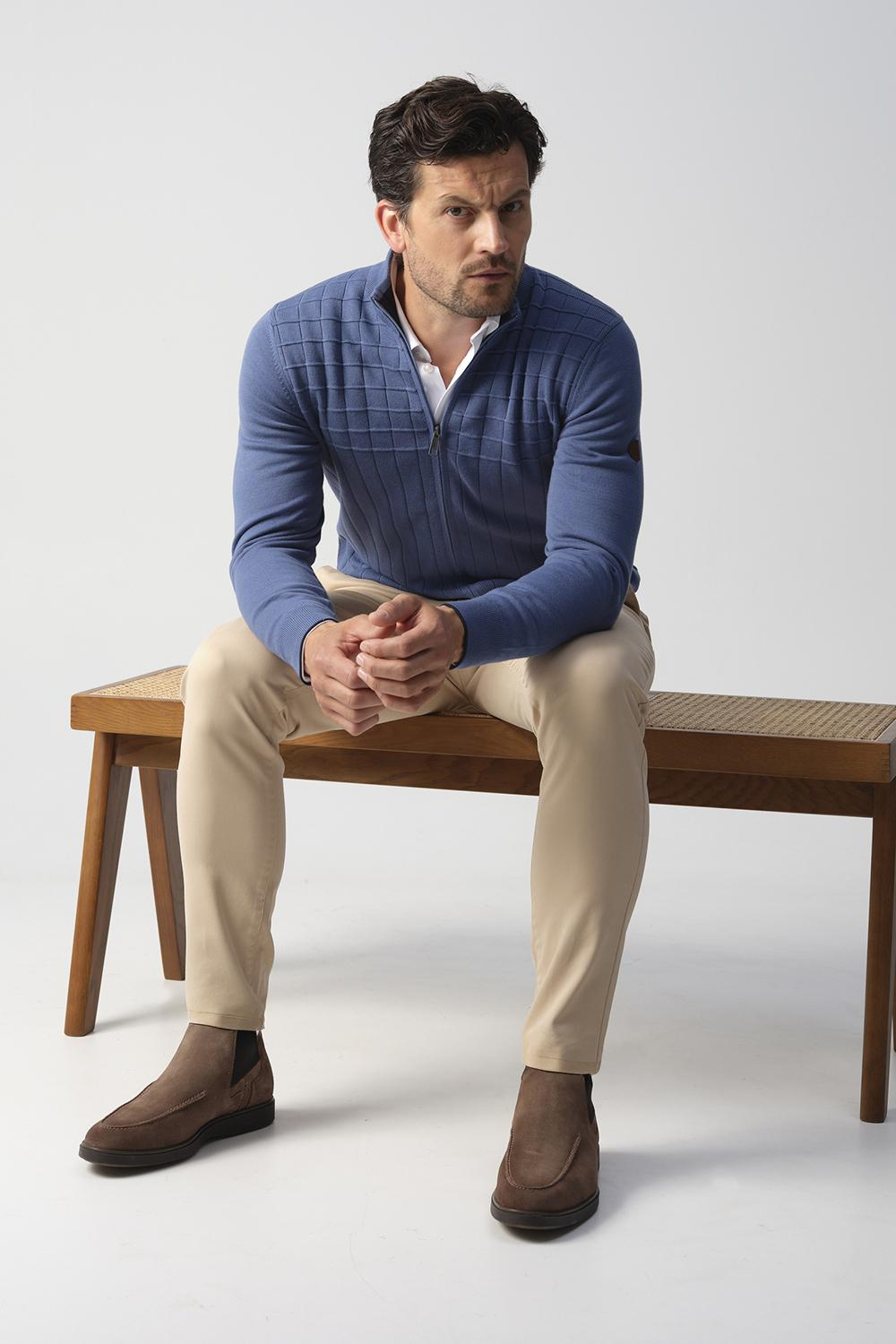 Dit azulblauwe vest van Campbell is een stijlvolle optie voor de herengarderobe. Het vest heeft een regular fit pasvorm en is vervaardigd van 100% katoen, waardoor het een comfortabele keuze is voor dagelijks gebruik. De structuur van het breisel geeft het vest een opvallende textuur, terwijl de high neck het geheel een moderne touch geeft. De veterdetail aan de sluiting voegt een subtiel accent toe. Dit Campbell vest is ideaal voor de herfstmaanden en kan moeiteloos worden gecombineerd met zowel casual als meer formele outfits. De lange mouwen en normale lengte maken het geschikt om te dragen op kantoor of voor een sociale bijeenkomst. Of je het nu combineert met een nette chino of een casual jeans, dit vest biedt je veelzijdigheid en stijl. Met zijn tijdloze uitstraling is het een waardevolle toevoeging aan je najaarsgarderobe.