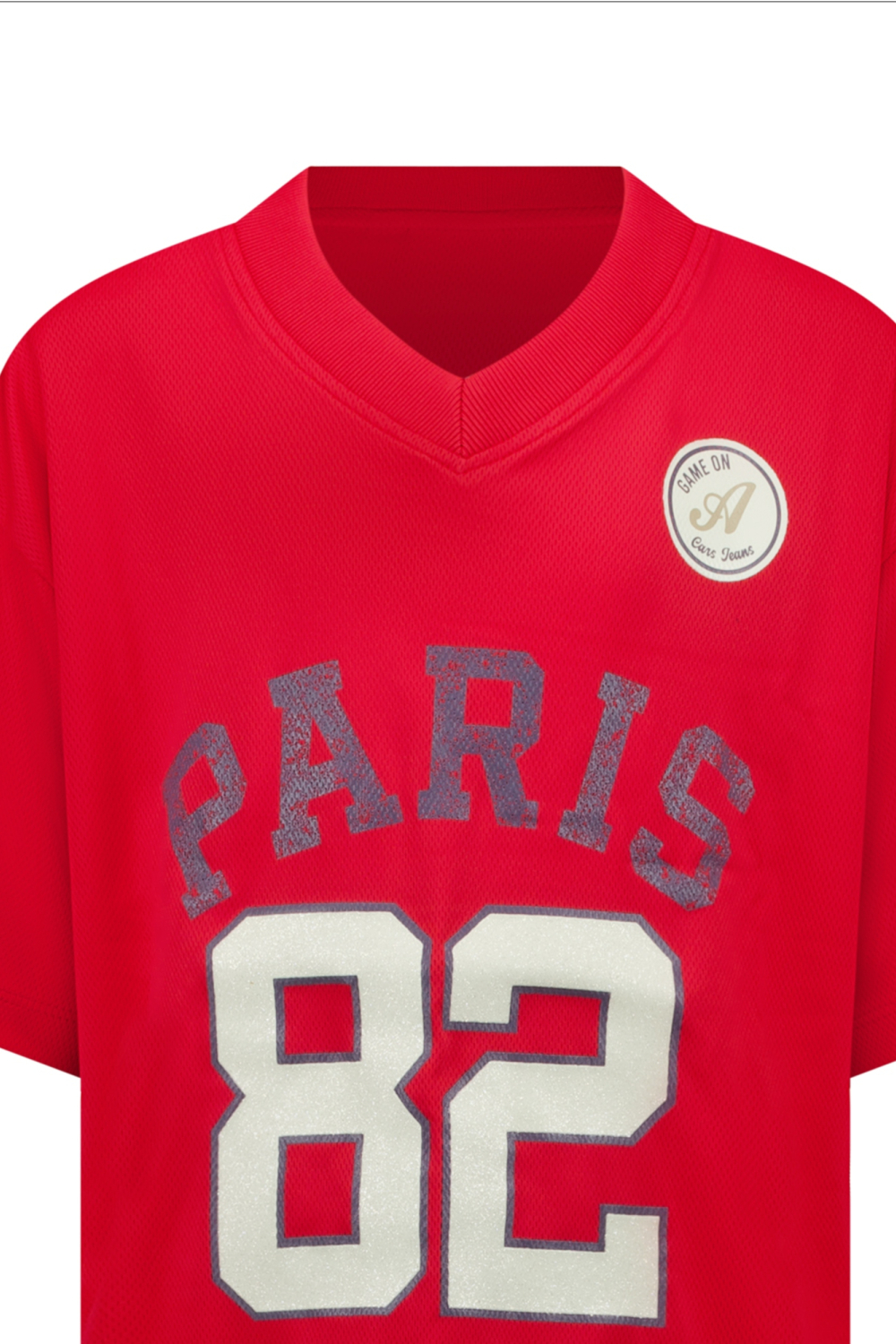 Dit rode T-shirt van Cars is een opvallende toevoeging aan je garderobe. De oversized pasvorm zorgt voor een ontspannen en moderne look, terwijl het 100% polyester materiaal comfort biedt, zelfs tijdens de koudere wintermaanden. De korte mouwen en de V-hals geven het T-shirt een casual uitstraling, perfect voor alledaags gebruik. De glitters in het ‘PARIS 82 SPORTS CLUB’ ontwerp voegen een vleugje speelsheid toe, waardoor je opvalt in elke situatie.