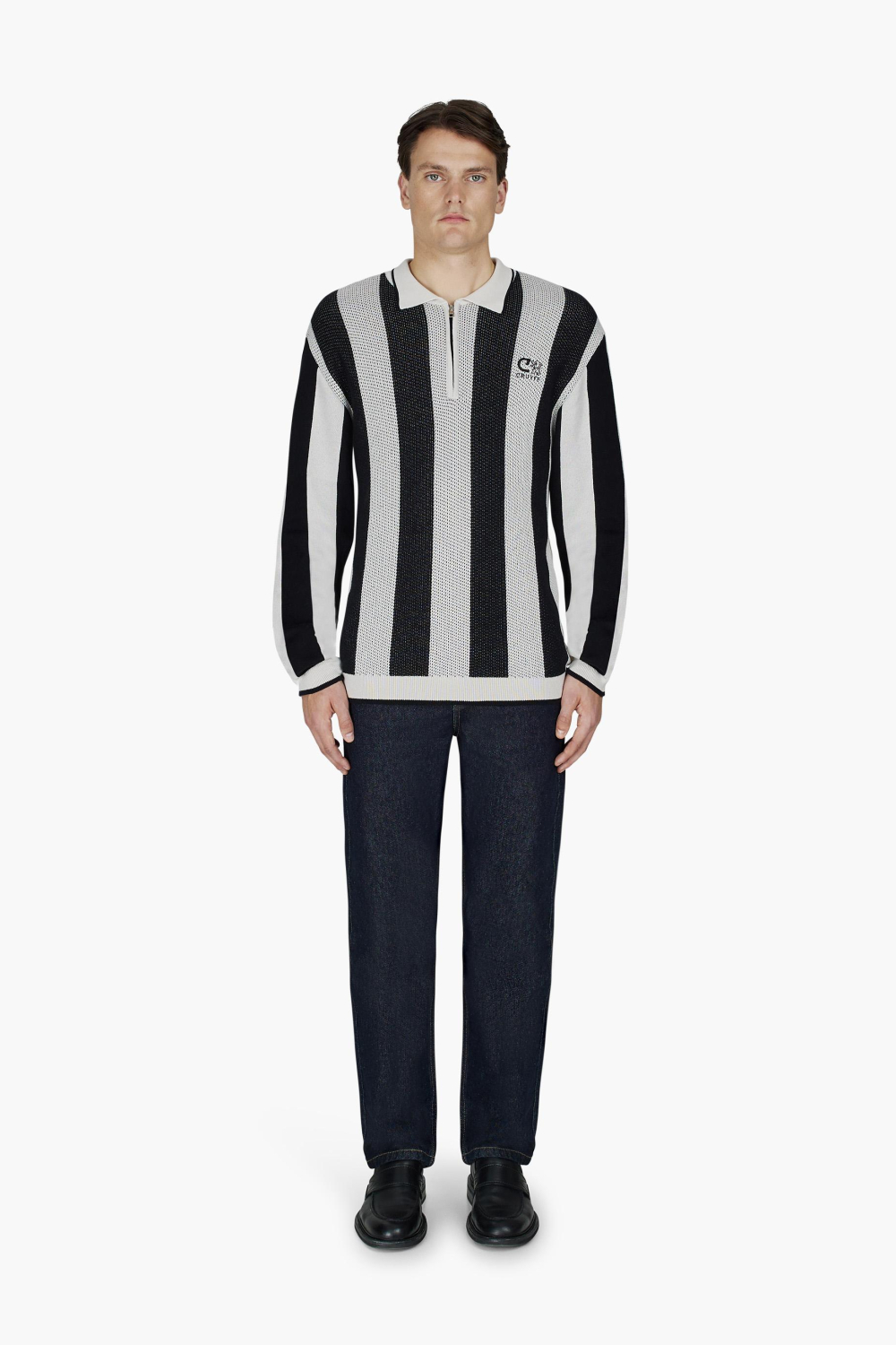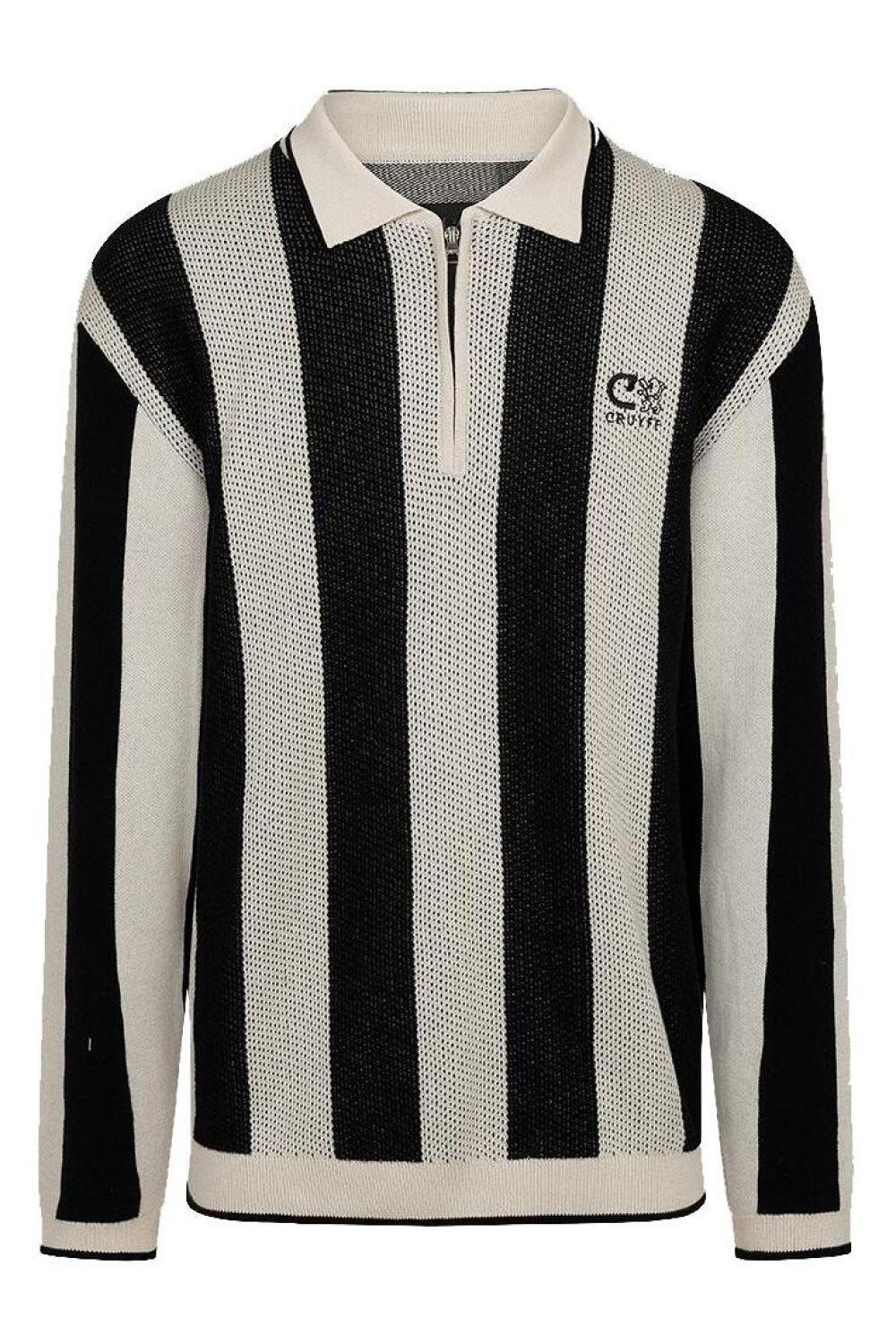 Deze Cruyff polo is een stijlvolle keuze voor de winter. Met zijn zwart-witte strepen en regular fit pasvorm biedt hij een moderne uitstraling zonder in te boeten aan comfort. De polo is gemaakt van 100% katoen, wat het ademend en aangenaam maakt om te dragen tijdens koelere dagen. De puntkraag en ritssluiting geven een subtiele, sportieve twist aan het klassieke ontwerp, perfect voor verschillende gelegenheden.