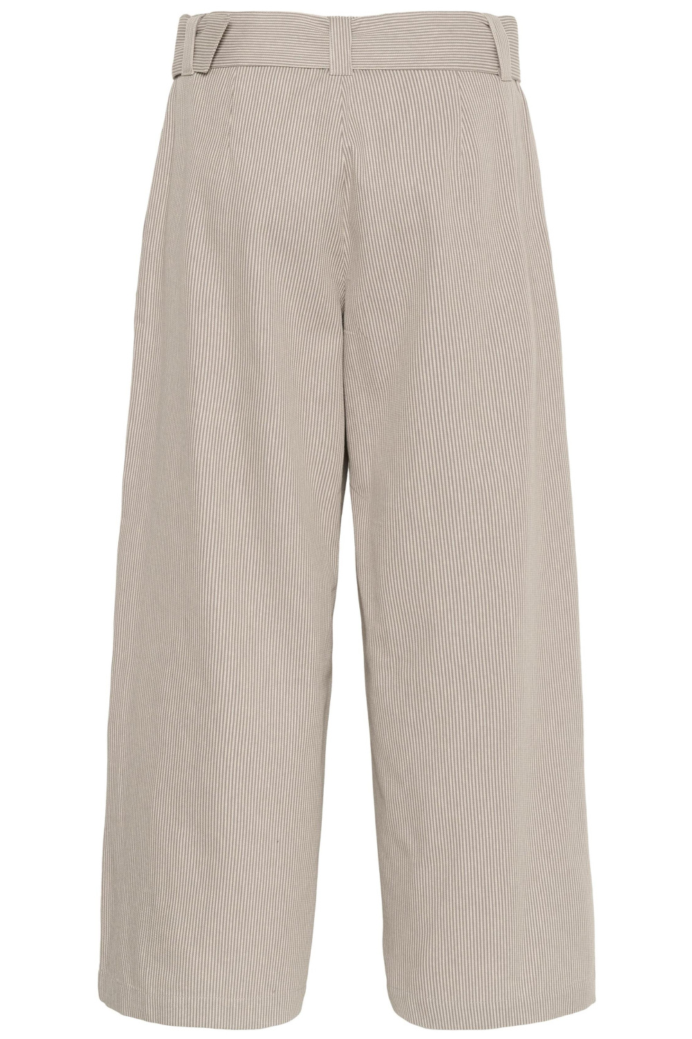 Deze casual broek van Culture in de kleur 'Cloudburst Whitecap Stripe' is een stijlvolle keuze voor jouw herfstgarderobe. Gemaakt van 100% katoen, biedt deze broek een comfortabele en ademende stof die perfect is voor verschillende gelegenheden. De wide leg pasvorm geeft een moderne twist, terwijl de subtiele streepjespatroon zorgt voor een elegante uitstraling. De regular waist en knoop/ritssluiting maken deze broek niet alleen modieus, maar ook praktisch met fijne steekzakken voor extra gemak. Met zijn tijdloze ontwerp is deze Culture broek ideaal voor diverse settings, van een informele werkdag tot een relaxed weekenduitje. Combineer hem met een stijlvolle blouse voor een verfijnde look, of draag hem met een casual T-shirt voor een ontspannen sfeer. De normale lengte maakt het makkelijk om deze broek te combineren met zowel hakken als sneakers, zodat je altijd klaar bent voor wat de dag ook brengt. Voeg dit veelzijdige stuk toe aan je garderobe en geniet van de stijl en comfort die het biedt.