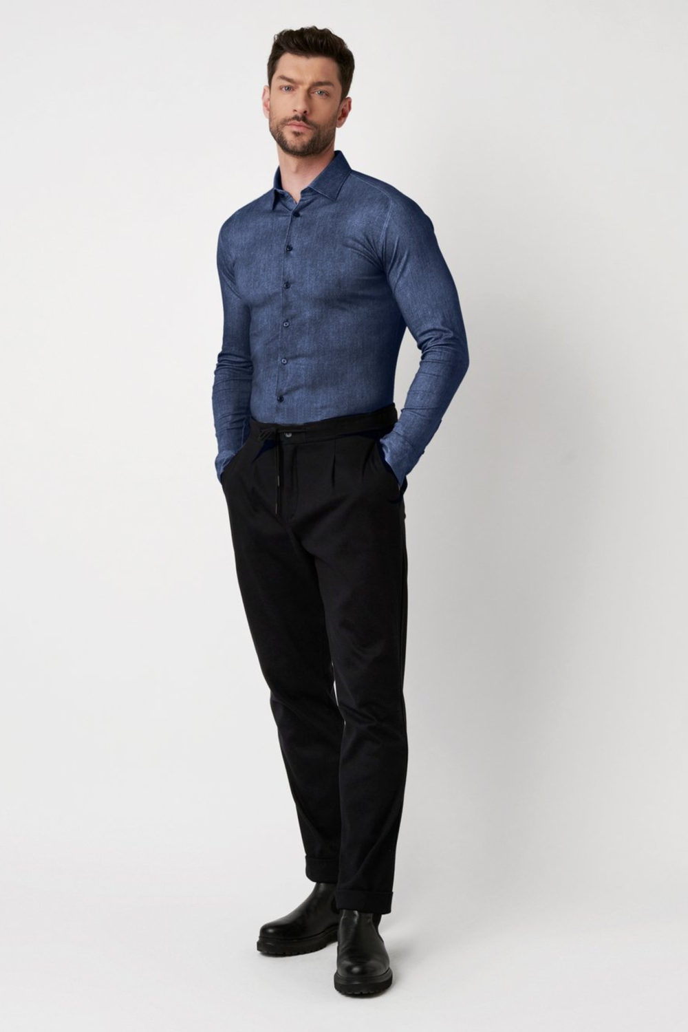 Dit stijlvolle Desoto overhemd in DARK BLUE DENIM is een veelzijdige keuze voor jouw garderobe. Gemaakt van 100% katoen, biedt het de zachtheid en het comfort die je zoekt. De regular pasvorm en de gemêleerde textuur geven het overhemd een casual doch verfijnde uitstraling, ideaal voor een relaxte dag op kantoor of een informeel diner. De lange mouwen en de puntkraag voegen net dat beetje extra toe, waardoor het zowel modern als tijdloos oogt.