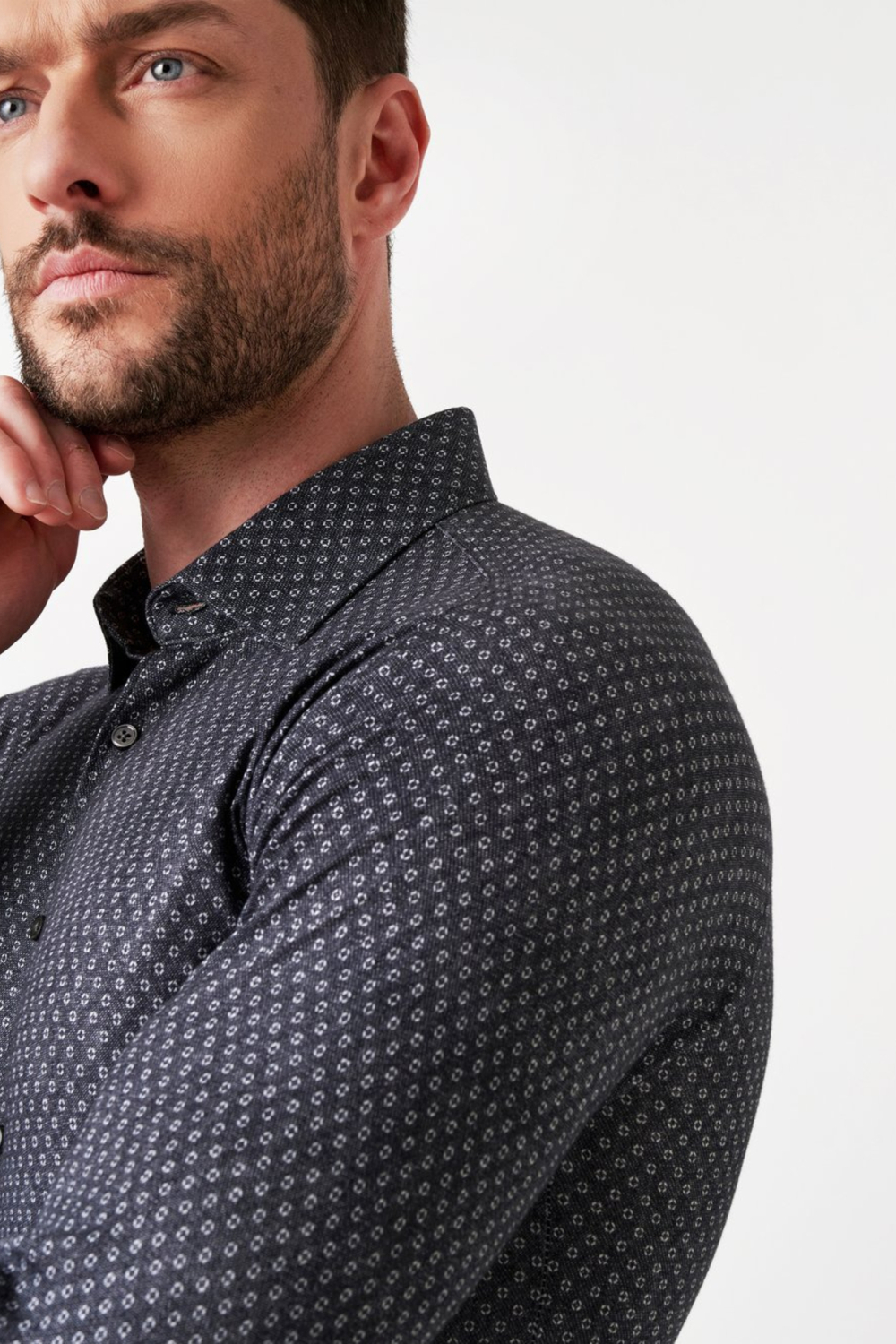 Dit gemêleerde navy denim overhemd van Desoto is een perfecte keuze voor de herfst. Met zijn puntkraag en lange mouwen straalt het een casual, maar toch verfijnde stijl uit. Het overhemd is gemaakt van 100% katoen, wat zorgt voor comfort en ademend vermogen. De regular fit past zich moeiteloos aan bij verschillende lichaamsvormen, waardoor het een veelzijdige aanwinst voor je garderobe is. De subtiele cirkelpatronen geven een unieke touch zonder overdreven te zijn, ideaal voor dagelijkse activiteiten of informele bijeenkomsten.