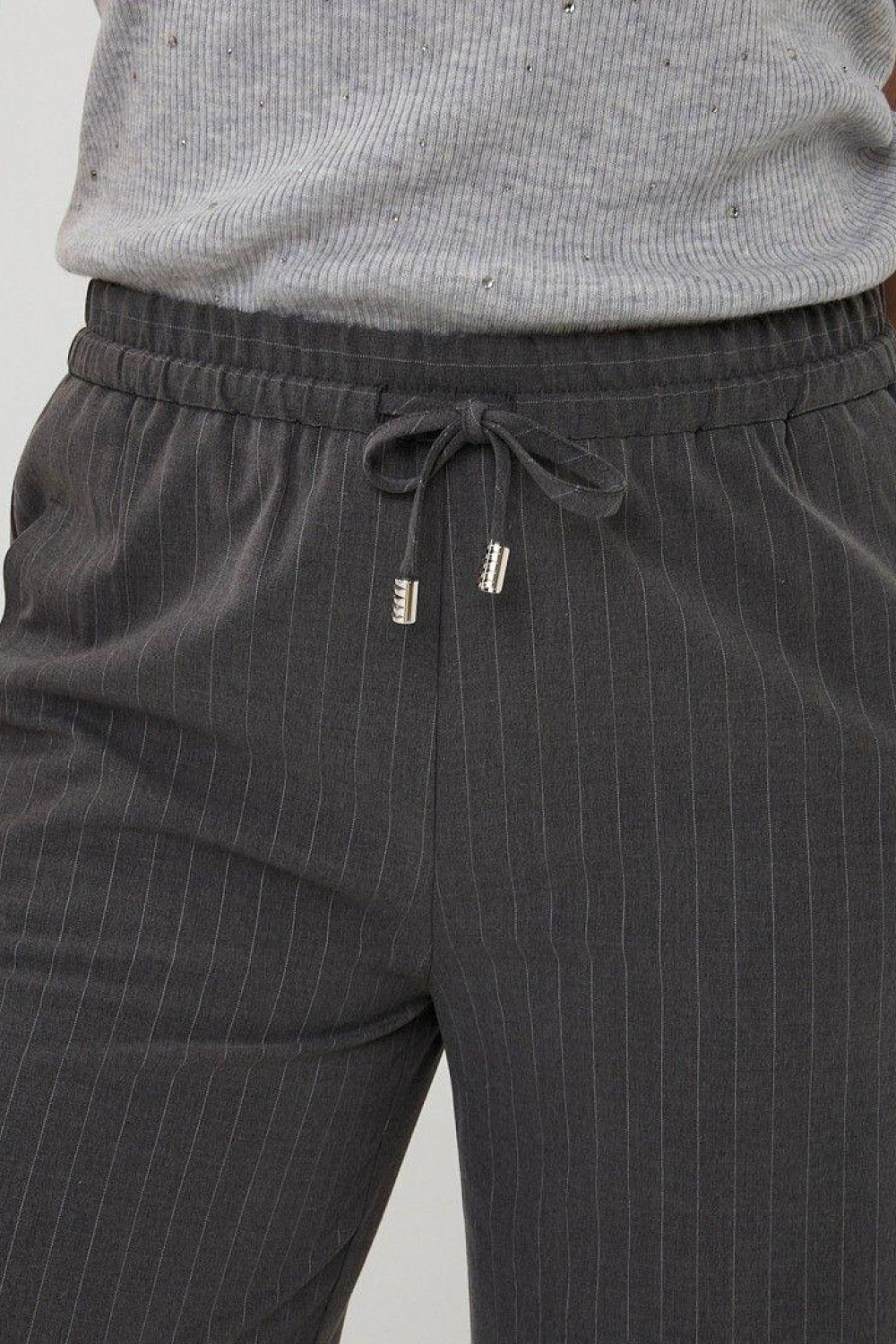 Deze grijze damesbroek van EsQualo is een stijlvolle aanwinst voor je wintergarderobe. Met een straight pasvorm en een subtiele strepenpatroon, biedt deze broek zowel comfort als een moderne uitstraling. De elastische boord zorgt voor een perfecte pasvorm terwijl de normaal gesneden lengte een klassieke look behoudt. Gemaakt van een hoogwaardige mix van 66% polyester, 28% viscose en 6% elastaan, garandeert deze broek flexibiliteit en duurzaamheid.