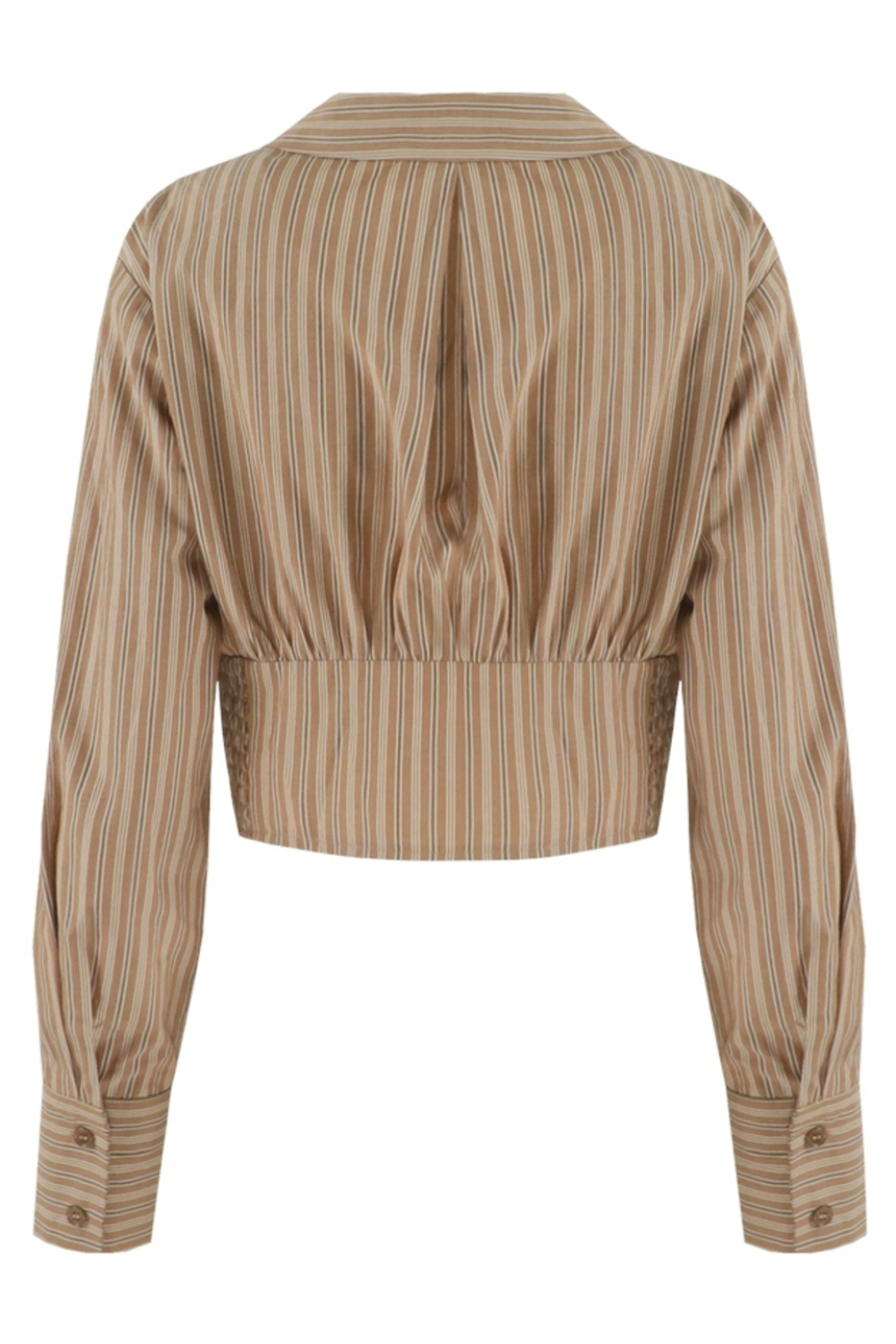 Deze stijlvolle damesblouse van Fluresk voegt een eigentijdse touch toe aan je wintergarderobe. Met een knoopsluiting en een klassieke puntkraag straalt deze blouse een subtiele elegantie uit. De gestreepte beige en bruine tinten geven een speelse maar ingetogen look, ideaal voor zowel casual als semi-formele gelegenheden. De mix van 50% katoen en 50% polyester zorgt voor een aangename pasvorm, terwijl de korte lengte een trendy uitstraling biedt, perfect te combineren met een high-waisted jeans of rok. Dankzij de lange mouwen is deze blouse ideaal om je comfortabel te houden tijdens de koelere maanden. De regular fit maakt het een veelzijdig stuk dat gemakkelijk te matchen is met verschillende stijlen. Deze blouse is perfect voor een dag op kantoor of een ontspannen middag met vrienden. Of je nu kiest voor een meer casual look of een iets formelere setting, deze Fluresk blouse past zich moeiteloos aan, zodat je altijd met vertrouwen voor de dag komt.