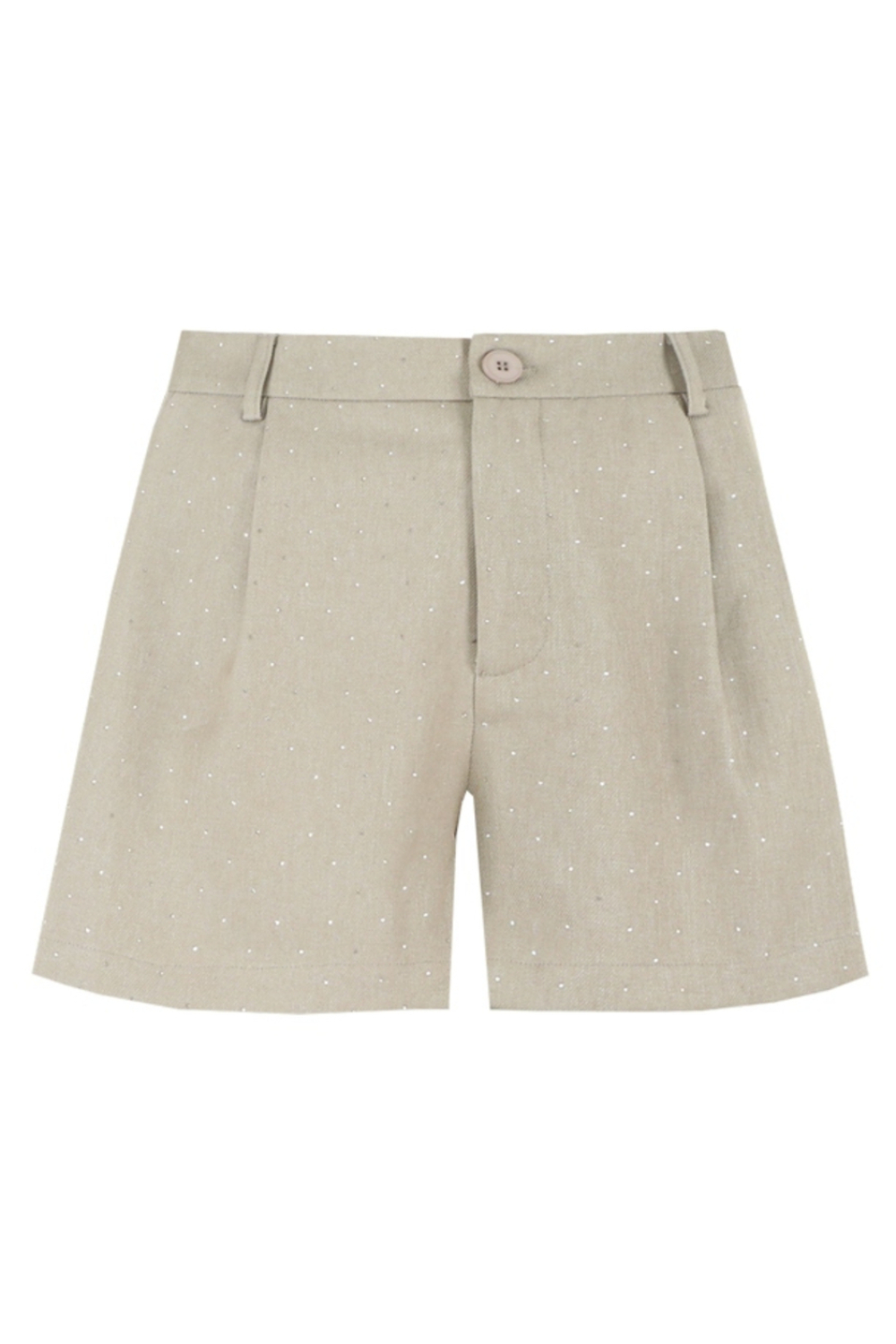Deze elegante warme taupe korte broek van Fluresk is een veelzijdige keuze voor de damesgarderobe. De zachte stof van 100% polyester geeft je een comfortabel en licht gevoel, perfect voor de koudere wintermaanden. De regular pasvorm zorgt voor een ontspannen silhouet, terwijl de subtiele strassdetails een uniek patroon toevoegen dat zowel casual als stijlvol aanvoelt. Met de knoop- en ritssluiting aan de voorkant biedt deze broek niet alleen gemak maar ook een verfijnde uitstraling. Of je nu een dagje gaat shoppen of een informele bijeenkomst bijwoont, deze korte broek is een geschikte match. De steekzakken voegen praktische details toe voor dagelijks gebruik. Dankzij de warme taupe kleur is het eenvoudig te combineren met zowel lichte als donkere tinten. Draag het met een eenvoudige blouse en trendy laarzen voor een moderne look. De broek is ideaal voor een casual winterse dag, maar kan ook gemakkelijk worden omgetoverd tot een meer geklede outfit met de juiste accessoires.