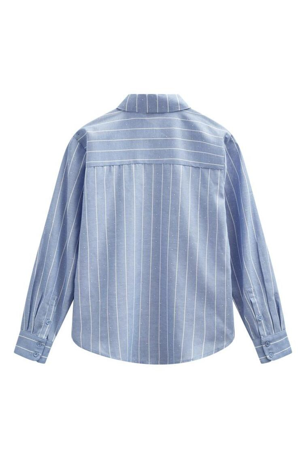 Deze blauwe blouse van Freequent is een stijlvolle keuze voor dames die op zoek zijn naar een casual look met een vleugje elegantie. De combinatie van katoen en polyester zorgt voor een comfortabele en duurzame stof die prettig aanvoelt op de huid. Dit model heeft een regular fit, waardoor het zowel flatterend als comfortabel is. De blouse is voorzien van een puntkraag en een knoopsluiting, wat het een klassieke uitstraling geeft. De strass details en het streeppatroon voegen een subtiele sprankeling toe aan de blouse, ideaal voor winterse dagen. De lange mouwen en de normale lengte maken deze blouse veelzijdig en gemakkelijk te combineren met zowel jeans als een nette broek. Of je nu een dagje op kantoor hebt of een informele lunch met vrienden, deze blouse past perfect bij uiteenlopende gelegenheden. Het ingetogen ontwerp met subtiele details maakt hem tot een praktische keuze die je garderobe verrijkt zonder overdreven te zijn. Voeg deze Freequent blouse toe aan je collectie voor een dosis moderne elegantie.