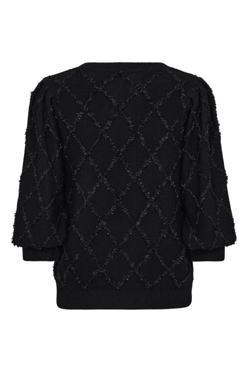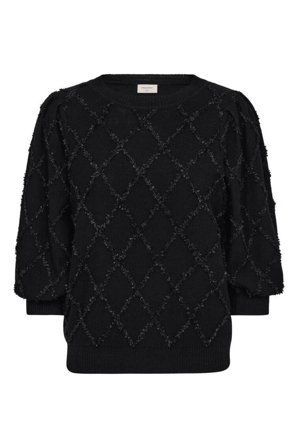 Deze stijlvolle zwarte trui van Freequent is een veelzijdige aanvulling voor je wintergarderobe. Het is gemaakt van 100% katoen en biedt een comfortabele, ademende stof met een regular fit pasvorm. De trui is voorzien van een ronde hals en een prachtig gestructureerd patroon dat een subtiele elegantie toevoegt. De 3/4 mouwen zorgen voor een moderne twist, waardoor de trui perfect is voor zowel casual als semi-formele gelegenheden. Dankzij het tijdloze design kun je deze Freequent trui eenvoudig combineren met verschillende stijlen. Draag hem boven een nette rok voor een zakelijke look of met je favoriete jeans voor een meer relaxte outfit. De normale lengte van de trui en de subtiele textuur zorgen ervoor dat je stijlvol en comfortabel blijft in het koude seizoen. Of je nu een dag op kantoor hebt of een avondje uit gaat, met deze trui maak je altijd de juiste indruk. Perfect voor dames die houden van knitwear dat zowel stijlvol als functioneel is.