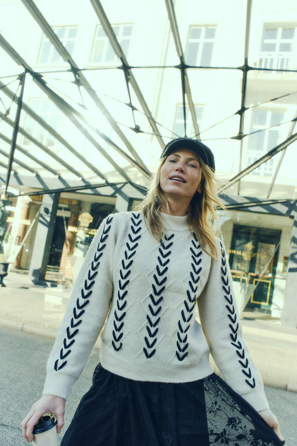 De lange mouwen en de normale lengte maken deze trui perfect voor koude dagen, of je nu onderweg bent naar kantoor of geniet van een ontspannen weekend. Door de structuur van de trui heeft het ook een speelse uitstraling die geschikt is voor zowel casual als meer formele gelegenheden. Dit veelzijdige kledingstuk is absoluut een waardevolle aanvulling voor iedereen die een balans zoekt tussen comfort en stijl.