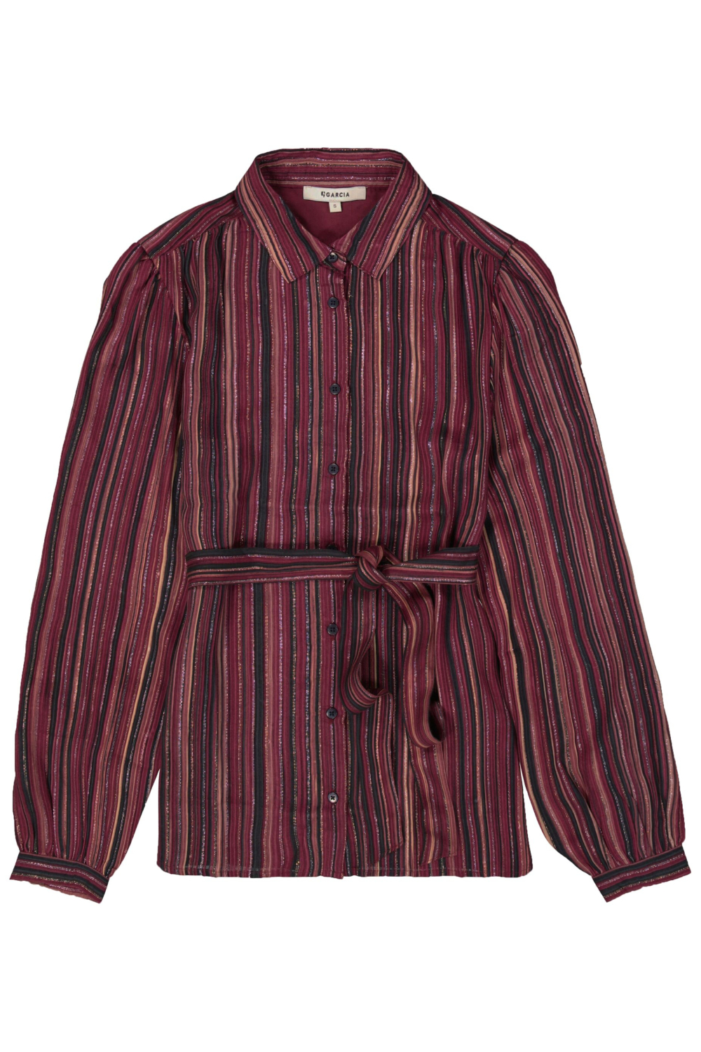 Deze elegante blouse van Garcia is een schitterende keuze voor je wintergarderobe. Gemaakt van 97% viscose en 3% metaalgaren, biedt deze blouse een zachte en luxe uitstraling. De opvallende glitters en de kleurrijke strepen creëren een speels effect, terwijl de klassieke knoopsluiting en het bijpassende strikceintuur voor een verfijnd geheel zorgen. Met de tijdloze regular fit past deze blouse perfect bij elke lichaamsvorm en biedt hij comfort zonder in te boeten op stijl. Of je nu naar een formele gelegenheid gaat of een gezellige avond met vrienden plant, deze blouse biedt een veelzijdige stijl. De lange mouwen en de subtiele glinsterende accenten maken het een stijlvolle keuze voor koele winterdagen. Combineer deze blouse met een donkere jeans of een nette rok voor een complete en modieuze look. Dankzij de duurzame materialen geniet je langer van dit prachtige kledingstuk, perfect voor elke moderne vrouw.