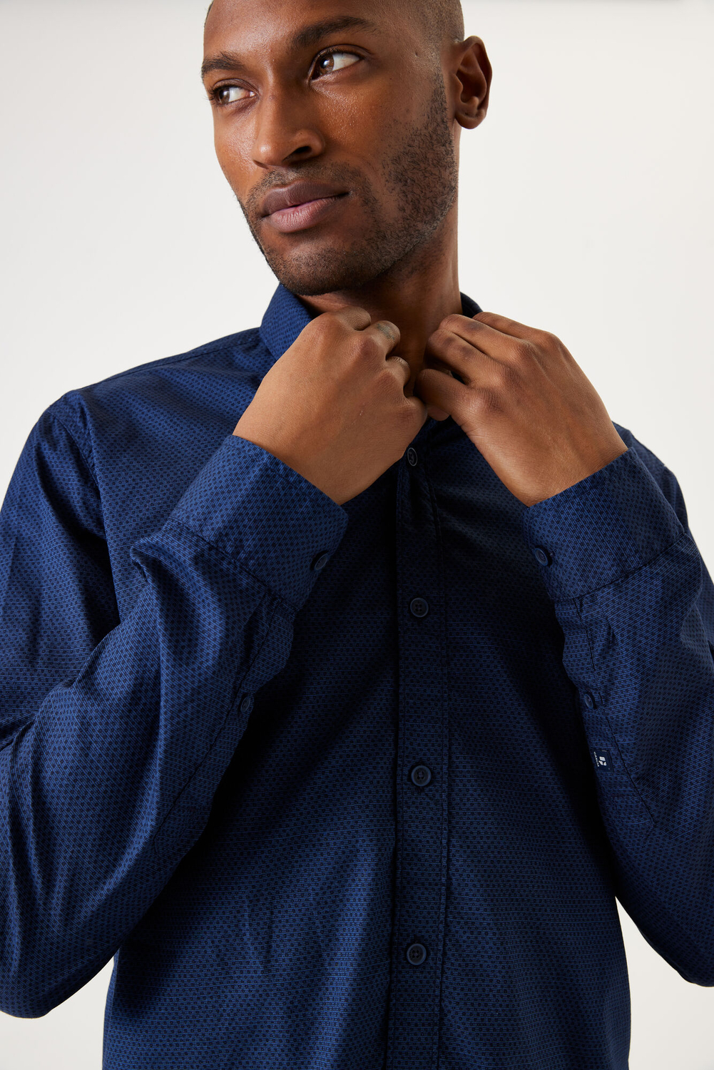 Dit casual overhemd van Garcia is een veelzijdige keuze voor de moderne man. Het grafische patroon in de rijke kleur "292 dark moon" maakt het een opvallend stuk in je garderobe. Dankzij de regular fit pasvorm biedt het voldoende bewegingsvrijheid zonder in te boeten aan stijl. De button-down kraag en de knoopsluiting geven het overhemd een nette uitstraling, terwijl de lange mouwen je warm houden tijdens de koelere herfstdagen. Het overhemd is gemaakt van 100% katoen, wat bijdraagt aan comfort en duurzaamheid. Dit Garcia overhemd is perfect voor verschillende situaties. Je kunt het gemakkelijk combineren met een casual jeans voor een ontspannen dagje uit, of met een nette pantalon voor een meer formele gelegenheid. Met zijn normale lengte is het geschikt om zowel in als over je broek te dragen. De subtiele textuur voegt extra diepte toe aan je look en maakt het gemakkelijk om te stylen voor diverse gelegenheden. Dit overhemd is een betrouwbare keuze die je moeiteloos door verschillende settings laat navigeren.