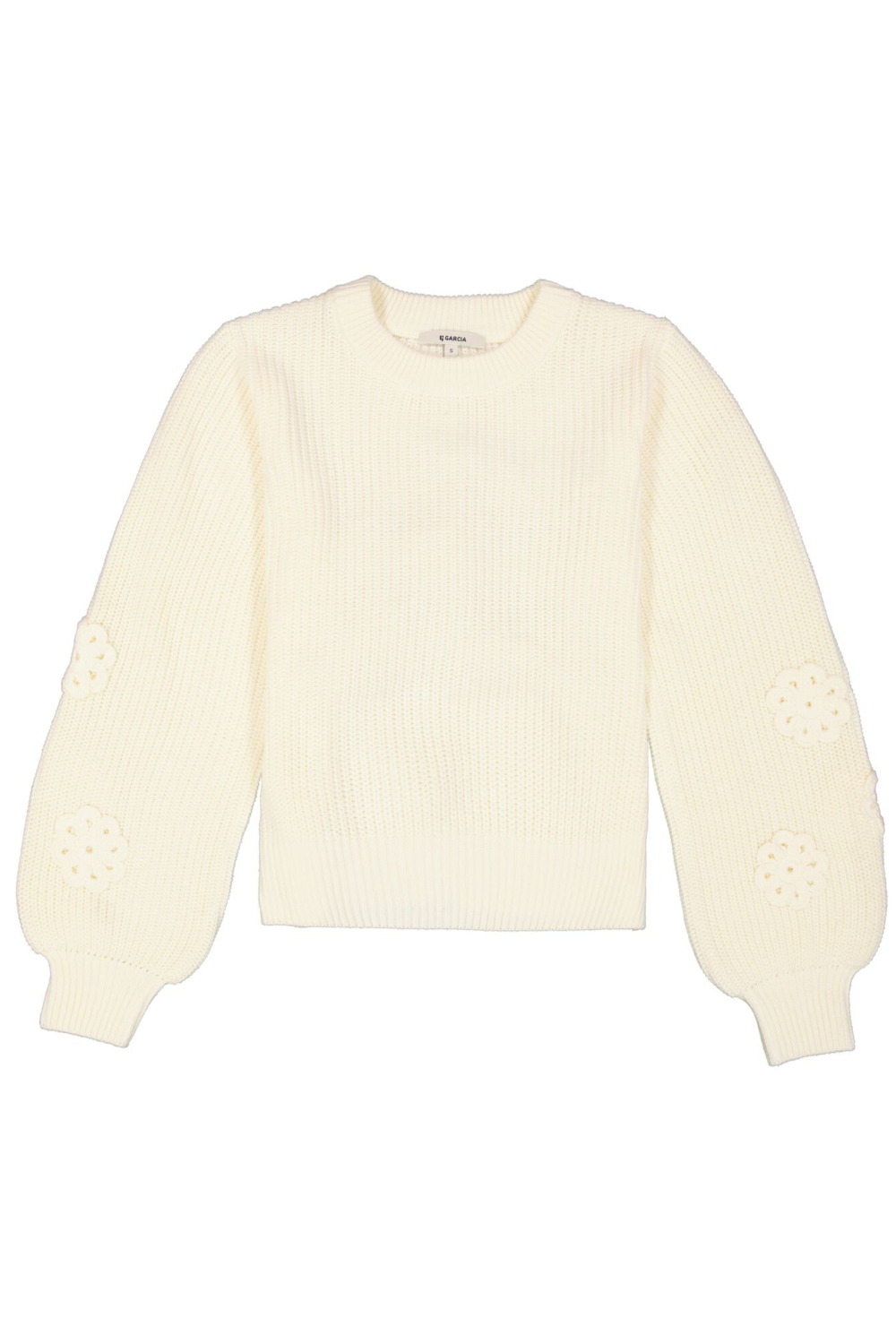 Deze elegante trui van Garcia vormt een veelzijdige aanvulling op je garderobe. Met zijn zachte, ivoorkleurige tint en het subtiele bloemenpatroon op de mouwen, biedt deze trui een verfijnde uitstraling. De regular fit pasvorm in combinatie met de ronde hals en lange mouwen, zorgt voor een comfortabele en stijlvaste look. Samengesteld uit 60% katoen en 40% acryl, biedt de trui zowel warmte als comfort, ideaal voor de wintermaanden. Of je nu een dagje op kantoor hebt of een gezellige avond met vrienden, deze trui past perfect bij diverse gelegenheden. Draag 'm met een strakke jeans voor een casual look of combineer met een rok voor een meer geklede stijl. Dankzij de normale lengte valt de trui mooi over de heupen, terwijl de opvallende textuur en bloemen op de mouwen een speelse touch toevoegen aan je outfit. Een praktische keuze die moeiteloos fashion en comfort combineert in de koude seizoenen.