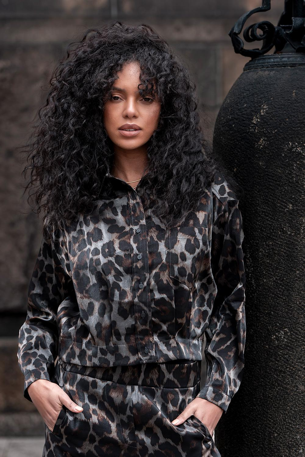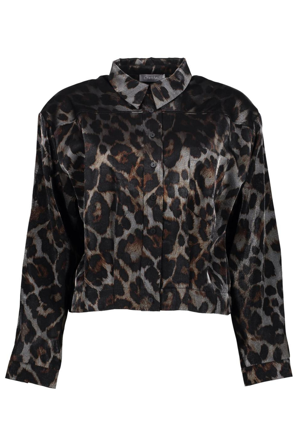 Deze Geisha blouse straalt moeiteloos stijl en comfort uit. Gemaakt van een mix van 81% viscose en 19% polyester, biedt het een zachte stof met een glanzende afwerking die perfect is voor de wintermaanden. Het opvallende dierenprint patroon geeft een speelse touch aan je outfit, terwijl de regular fit en lange mouwen zorgen voor een comfortabele pasvorm. De blouse heeft een klassieke puntkraag en een knoopsluiting, wat bijdraagt aan de casual doch verfijnde uitstraling. De subtiel geïntegreerde borstzakken voegen praktische details toe zonder afbreuk te doen aan het design.