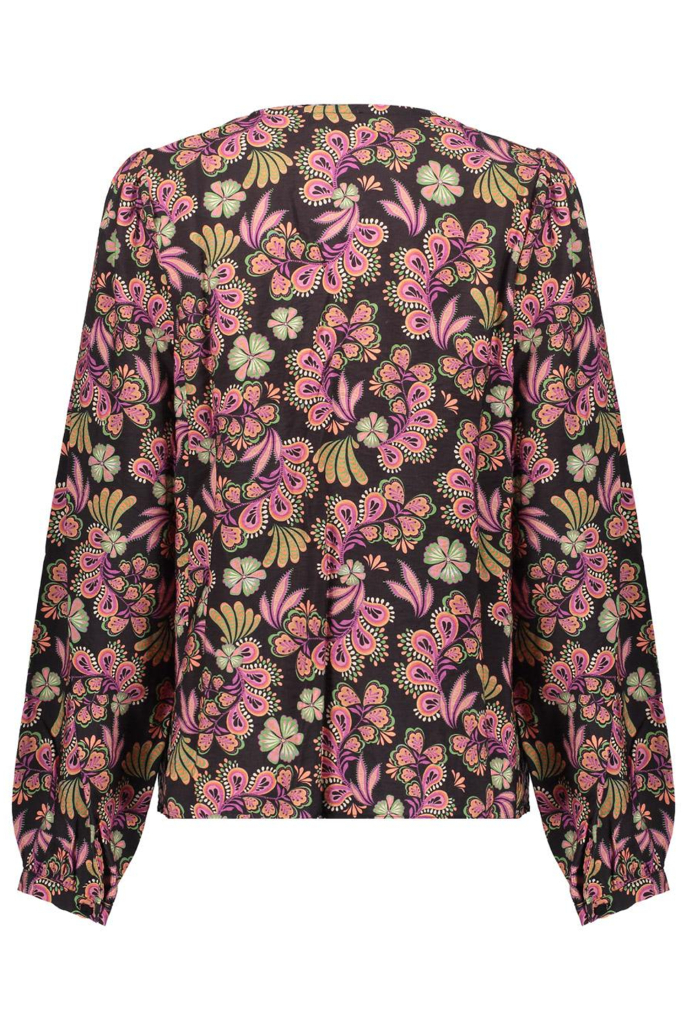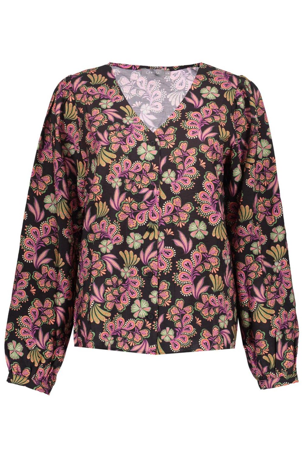 Deze Geisha damesblouse in Black/Coral is een stijlvolle toevoeging aan je wintergarderobe. De blouse heeft een prachtig bloemenpatroon met contrasterende kleuren zoals roze, groen en oranje, die zorgen voor een levendige uitstraling. De v-hals en de knoopsluiting geven het geheel een elegante touch. Gemaakt van 86% viscose en 14% polyamide, biedt deze blouse een zachte en comfortabele pasvorm, ideaal voor dagelijks gebruik.