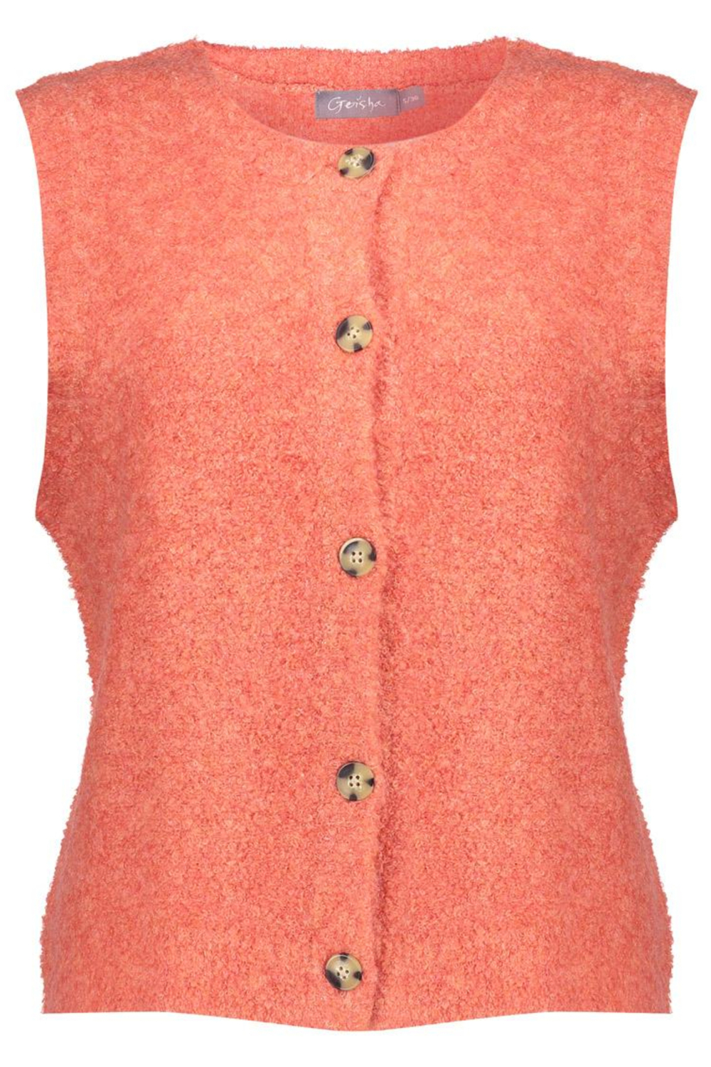 Het speelse, warme oranje van dit Geisha gilet zorgt ervoor dat je er stijlvol uitziet, of je nu een dag op kantoor doorbrengt of een avondje uit gaat. De normale lengte maakt het geschikt voor zowel casual als formele gelegenheden. Combineer het met een nette broek voor een geklede look of draag het over je favoriete jeans voor een meer ontspannen outfit. Dankzij het comfortabele knitwear materiaal voelt het vest zacht aan en houdt het je lekker warm tijdens de koudere maanden.