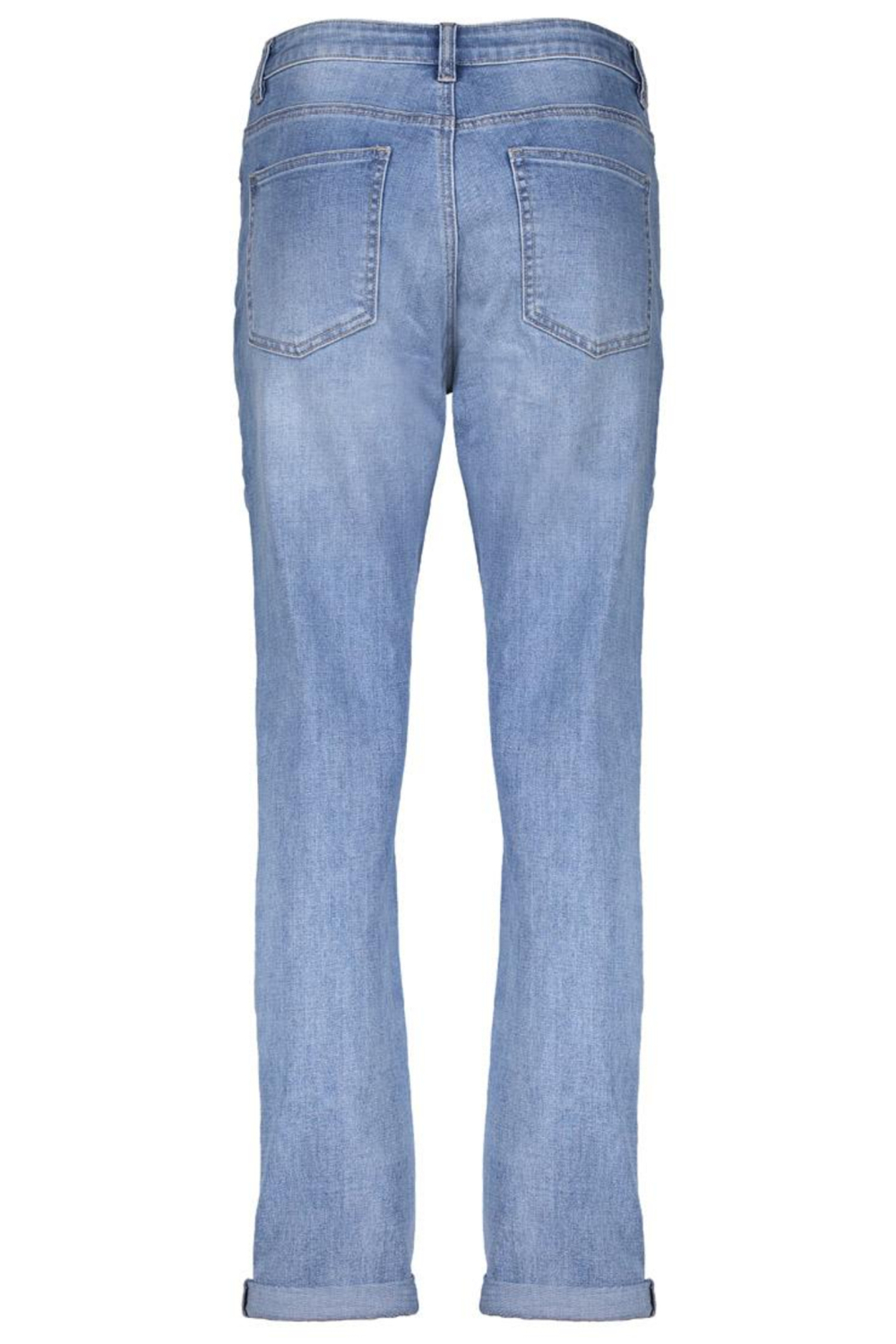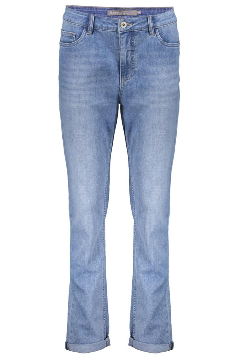 Deze Geisha jeans in stonebleach denim is een veelzijdige aanvulling op je zomergarderobe. Met zijn regular fit en normale lengte biedt deze jeans een comfortabele pasvorm die je perfect kunt dragen op casual dagen. De klassieke 5-pocket styling voegt een tijdloze touch toe, terwijl de knoop- en ritssluiting zorgt voor praktische draagbaarheid. De lichte stonewash geeft de jeans een nonchalante, maar stijlvolle uitstraling die moeiteloos past bij elke ontspannen gelegenheid. Het zachte materiaal van 76% katoen, 22% polyester en 2% elastan zorgt voor voldoende stretch en bewegingsvrijheid, waardoor deze jeans ideaal is voor dagelijks gebruik. Of je nu gezellig een terrasje pikt of een dagje gaat shoppen, deze jeans is een betrouwbare keuze. Combineer hem gemakkelijk met een luchtige blouse of een casual T-shirt voor de perfecte zomerse look. Voeg deze simpele maar stijlvolle Geisha jeans toe aan je collectie voor een moeiteloze en casual chic look.