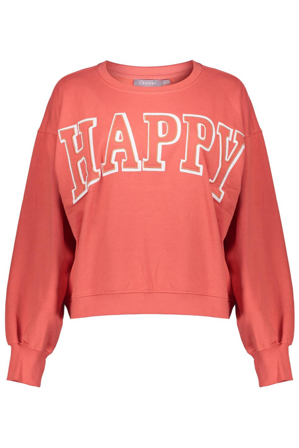 Geisha oranje dames sweater | Model vooraanzichtGeisha oranje dames sweater | VooraanzichtGeisha oranje dames sweater | AchteraanzichtGeisha oranje dames sweater | Close upGeisha oranje dames sweater | Kleurstaal