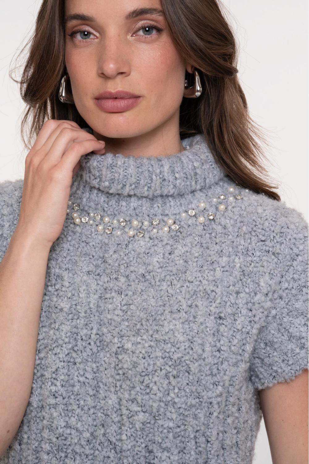 gebreide spencer met steentjes en colkraag 54891 70
