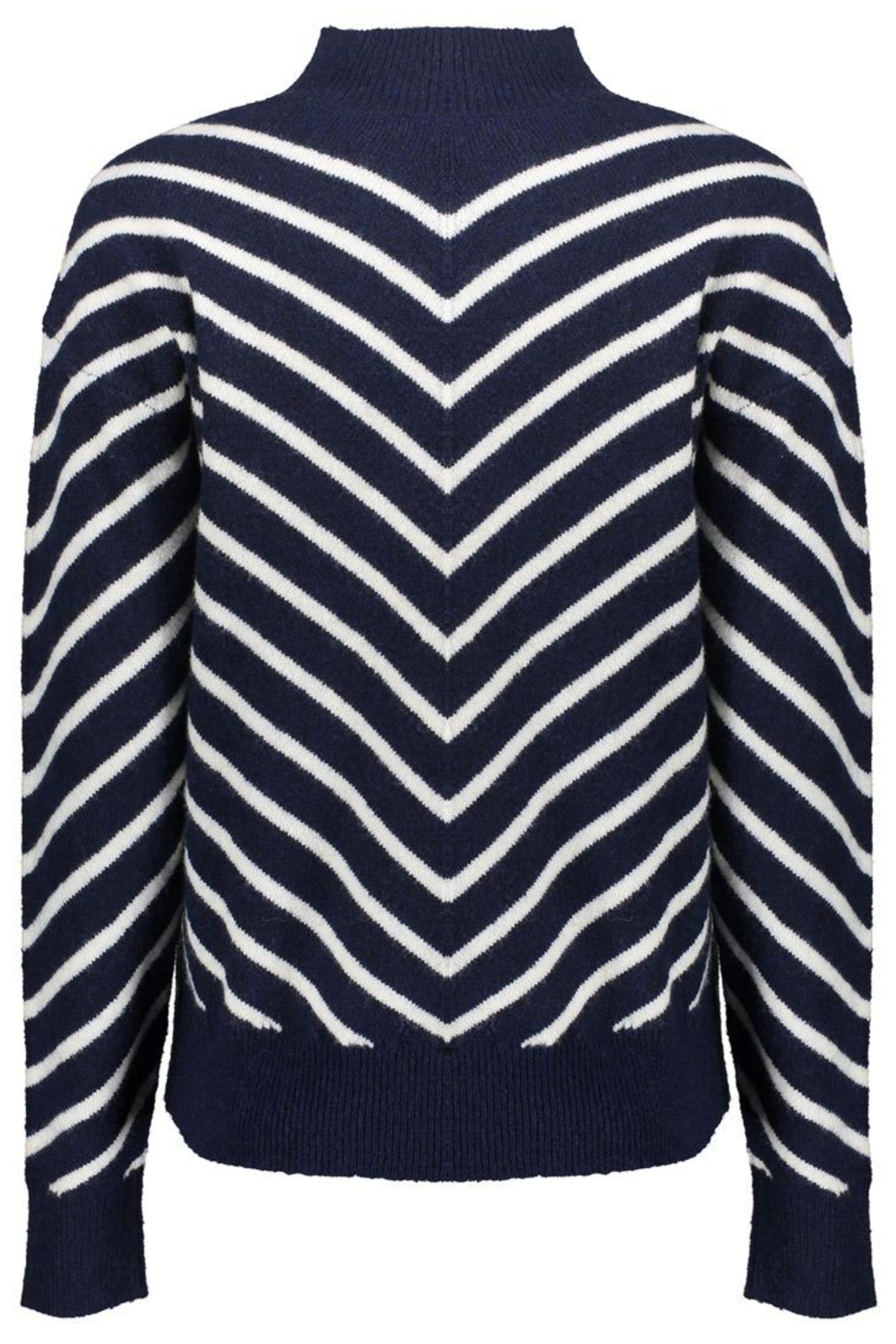 Deze stijlvolle trui van Geisha in navy en offwhite is een veelzijdige aanvulling op je kledingkast. Met zijn opvallende streepmotief en high neck biedt de trui een moderne uitstraling die je warm houdt tijdens de herfst. De regular fit zorgt voor een comfortabele pasvorm, waardoor het perfect is voor zowel een relaxte dag thuis als een doordeweekse kantoordag. Het gebruikt 74% acryl, 22% polyester en 4% elastan, wat zorgt voor een zachte en duurzame stof die lang mooi blijft.