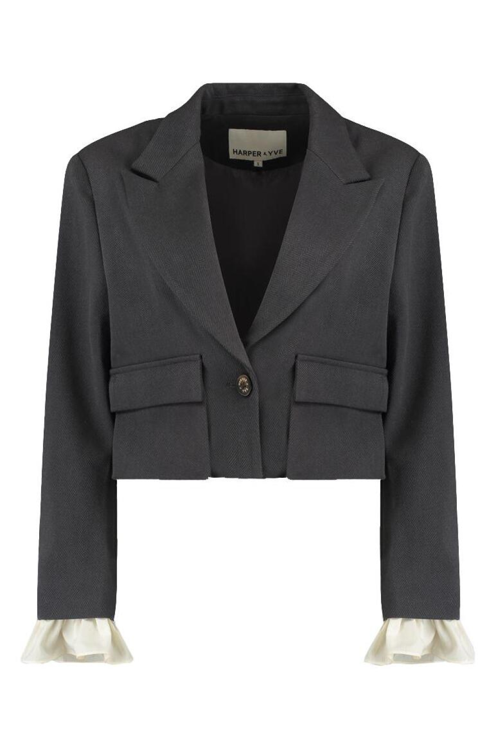 Deze stijlvolle damesblazer van Harper & Yve is een elegante aanvulling op je wintergarderobe. De blazer heeft een regular fit en een korte lengte, waardoor hij perfect is voor een casual maar toch verfijnde look. De revers kraag en enkele knoopsluiting geven een klassieke uitstraling, terwijl de klepzakken functioneel en modieus zijn. Gemaakt van hoogwaardige materialen met een polyester voering, biedt deze blazer zowel comfort als duurzaamheid, ideaal voor de koudere seizoenen.