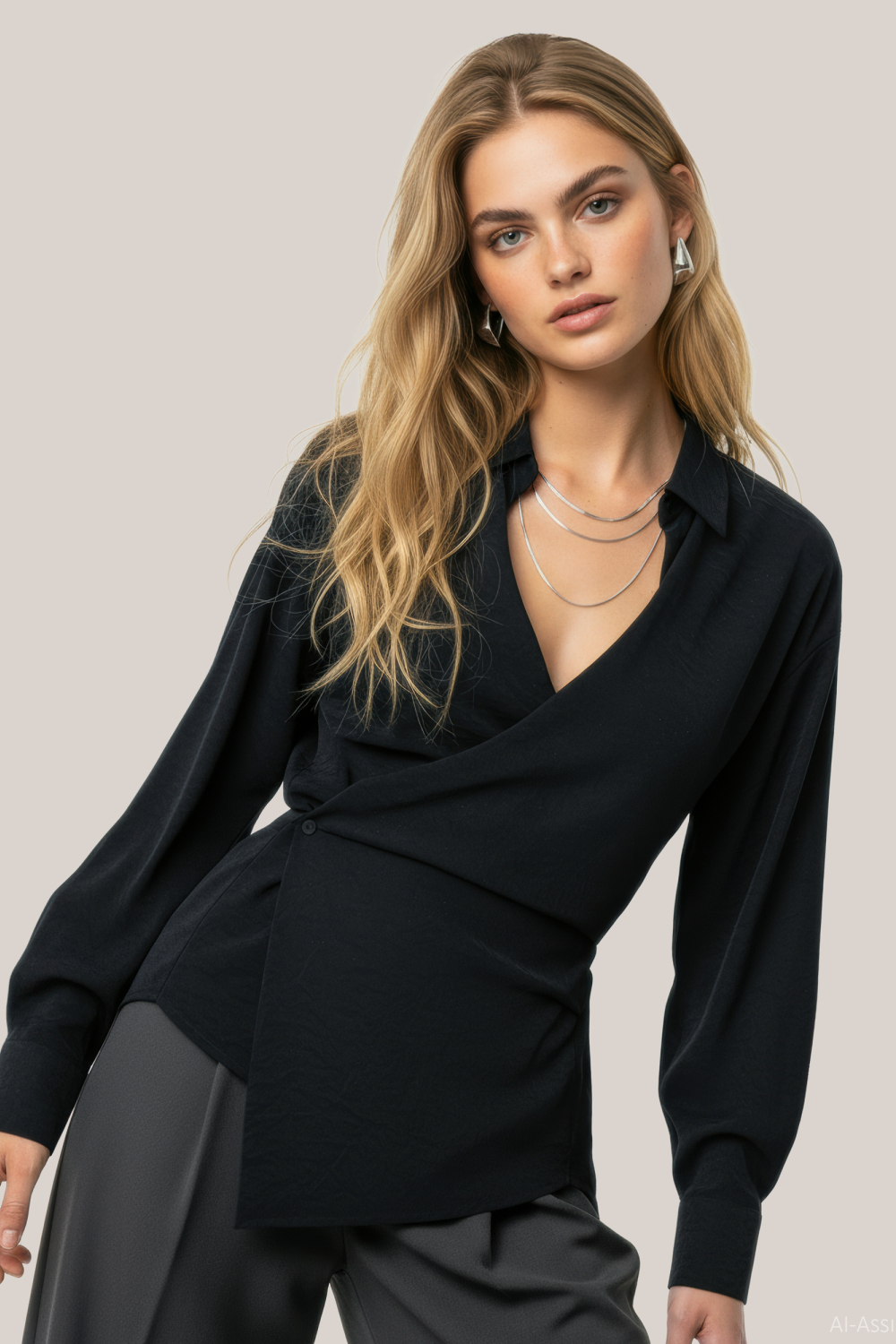 • Hype Drop zwarte dames blouse | Model vooraanzicht