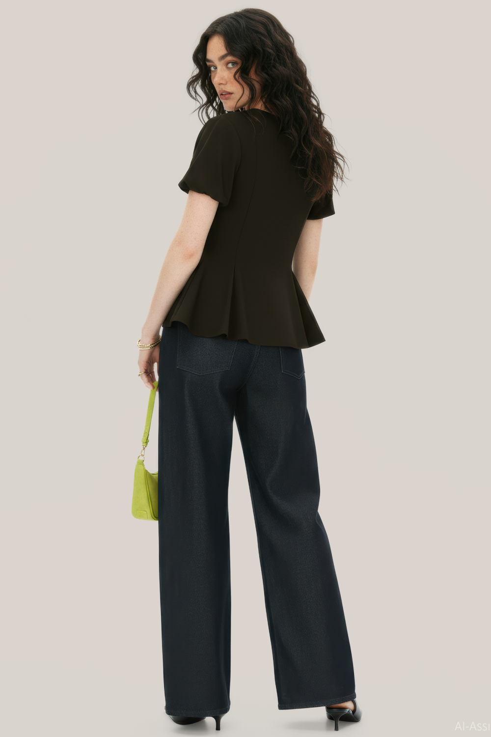 Dit casual zwarte T-shirt van Hypedrop voegt een vleugje elegantie toe aan je wintergarderobe. Gemaakt van een zachte mix van 95% katoen en 5% elastan, biedt dit T-shirt jou een comfortabele pasvorm die de bewegingen van je lichaam volgt. Met zijn ronde hals en korte mouwen zorgt het voor een ontspannen look, terwijl de licht uitlopende plooien aan de onderzijde voor een subtiele speelse touch zorgen. Draag dit regular fit T-shirt met je favoriete jeans voor een casual dagelijkse look of combineer het met een pantalon voor een meer verfijnde stijl. De diepzwarte kleur maakt dit Hypedrop T-shirt gemakkelijk te combineren met verschillende items in je garderobe. Het is ontworpen voor dames die houden van stijl en comfort, en kan moeiteloos worden gedragen naar informele bijeenkomsten, een dagje shoppen of een avondje uit. Dankzij de normale lengte kan het T-shirt zowel over een broek worden gedragen als ingestopt voor een meer gepolijste uitstraling. Dit veelzijdige T-shirt is een prima keuze voor diverse winterse activiteiten waarbij je comfortabel wilt zijn zonder in te boeten op stijl.