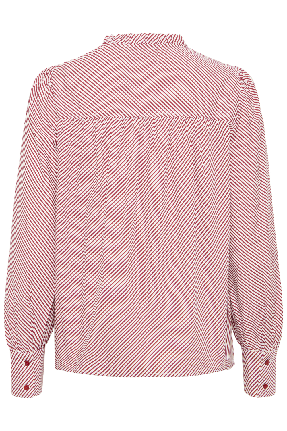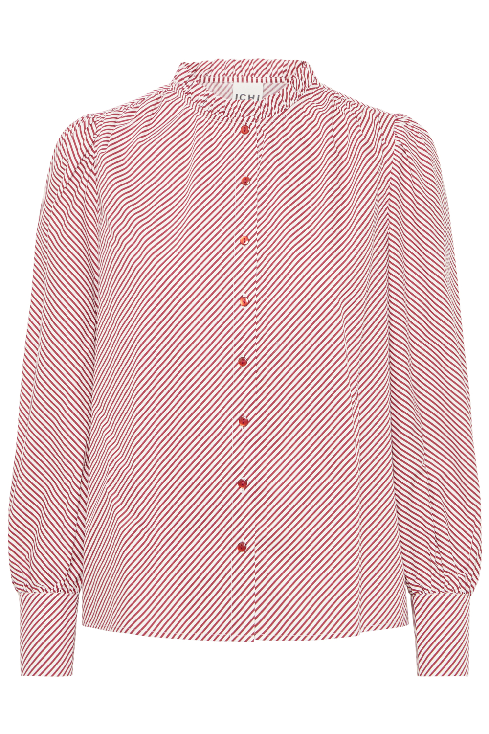 Deze casual blouse van Ichi is een veelzijdig kledingstuk dat perfect in je wintergarderobe past. De opvallende rode en witte strepen geven de blouse een speelse uitstraling, terwijl de ronde hals en knoopsluiting zorgen voor een klassieke afwerking. Gemaakt van 100% katoen, biedt deze blouse de hele dag door comfort. De blouse is ontworpen in een regular fit, wat betekent dat je bewegingsvrijheid hebt zonder in te leveren op stijl. Het is een ideale keuze voor elke gelegenheid, of je nu een drukke werkdag hebt of een ontspannen avond met vrienden.