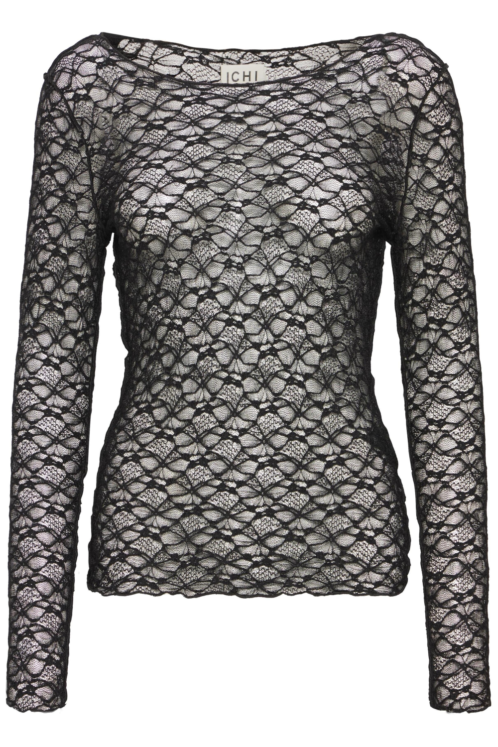 Deze elegante kant T-shirt van Ichi is een verfijnde toevoeging aan je wintergarderobe. De 194008 Black kleur biedt een veelzijdige basis die je gemakkelijk kunt combineren met andere items. Het nauwsluitende slim fit model volgt subtiel de contouren van het lichaam voor een moderne uitstraling. Het delicate kantpatroon geeft het T-shirt een vrouwelijke en stijlvolle touch, terwijl de ronde hals en lange mouwen zorgen voor extra comfort en warmte tijdens de koudere maanden.