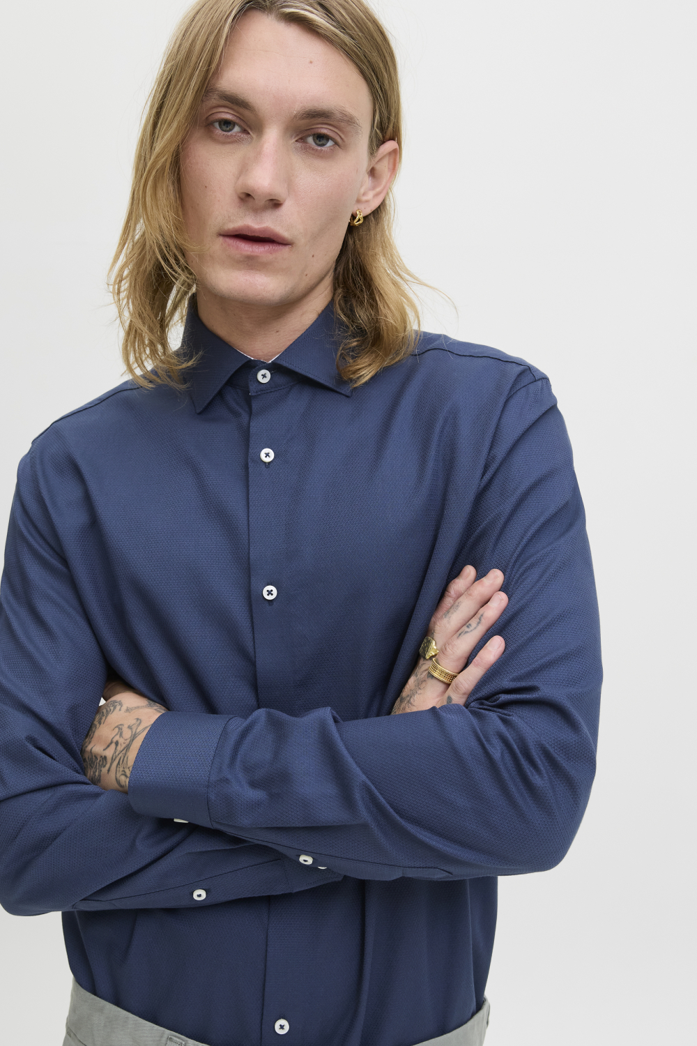 Met dit Jack & Jones overhemd in Black Iris voeg je een stijlvolle en veelzijdige keuze toe aan je wintergarderobe. Het shirt heeft een regular fit en is gemaakt van 100% biologisch katoen, wat zorgt voor een comfortabele en duurzame optie. De puntkraag en knoopsluiting geven het een klassieke uitstraling, terwijl het visgraatpatroon een subtiele, hedendaagse twist biedt. Het tijdloze design maakt dit overhemd geschikt voor diverse gelegenheden, van informele bijeenkomsten tot zakelijke meetings.