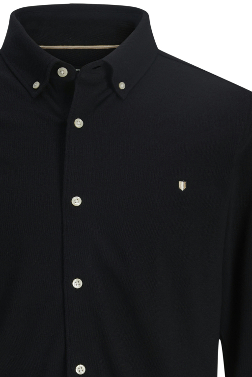 Dit casual zwarte overhemd van Jack & Jones met button-down kraag is een subtiele en veelzijdige toevoeging aan je wintergarderobe. Gemaakt van 100% katoen, geeft het een zachte touch en een comfortabele pasvorm. Met de regular fit biedt dit overhemd voldoende bewegingsvrijheid zonder in te boeten op stijl. De elegante knoopsluiting en de verfijnde details, zoals de kleine geborduurde emblemen op de borst, geven het geheel een moderne uitstraling.