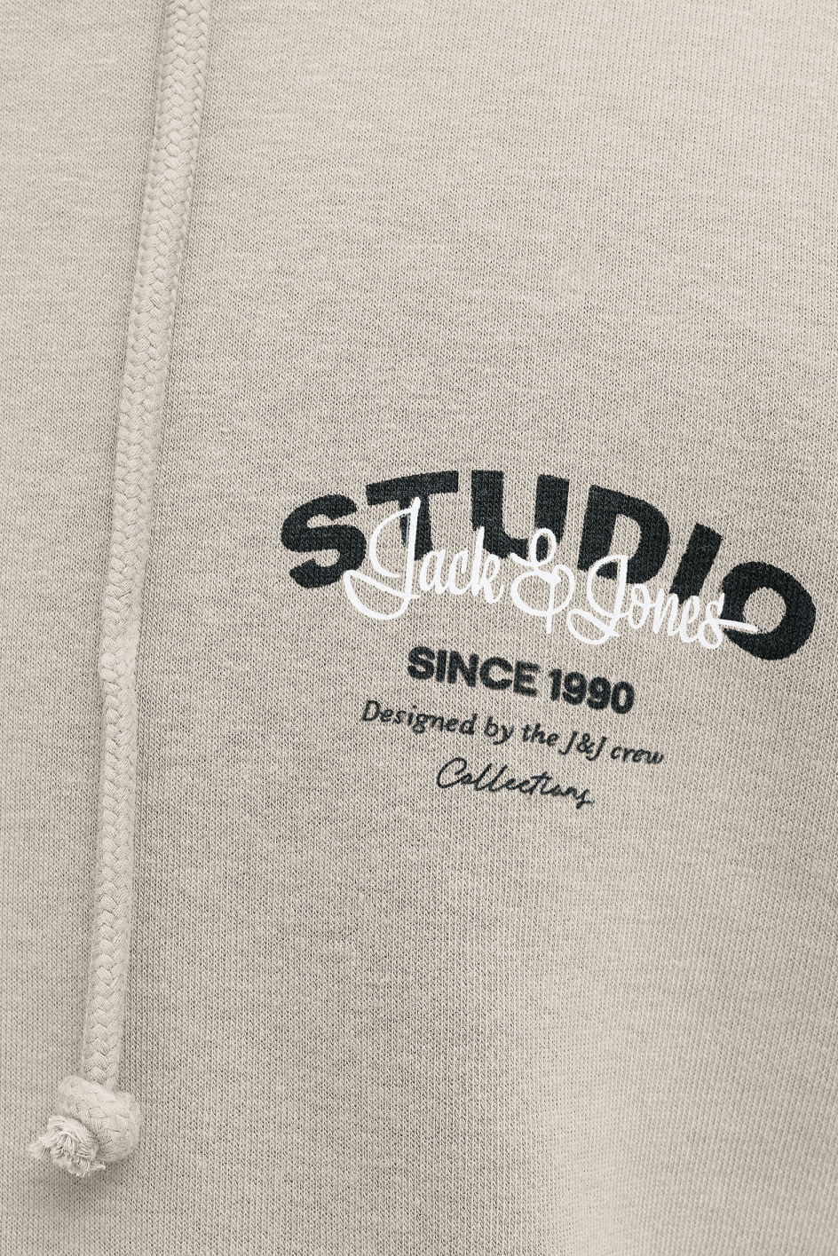 Deze casual sweater met capuchon van Jack & Jones combineert stijl en comfort op een nonchalante manier. Gemaakt van een duurzame mix van 60% biologisch katoen en 40% gerecycled polyester, zit hij heerlijk zacht en warm, perfect voor de koudere maanden. De regular fit en de normale lengte zorgen voor een ontspannen pasvorm, terwijl de lange mouwen en praktische steekzakken extra gemak bieden. Het subtiele Jack & Jones logo op de borst en de beige tint maken deze sweater een veelzijdige aanvulling op je vrijetijdsgarderobe.