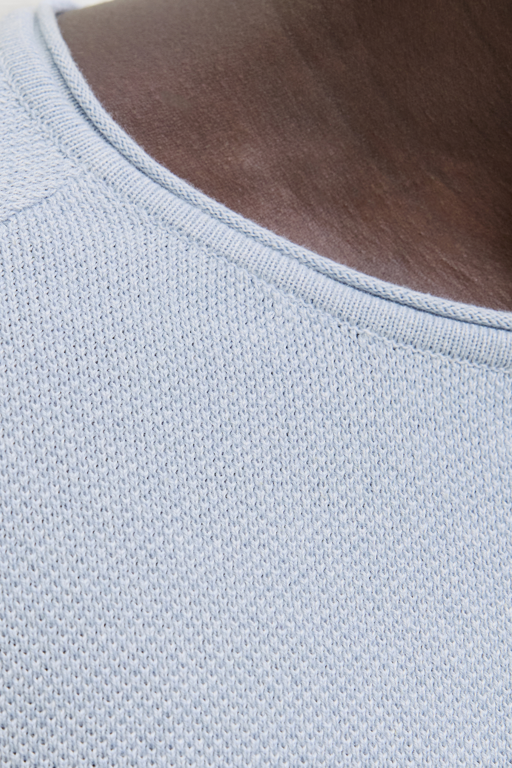Deze comfortabele Jack & Jones trui in de kleur Celestial Blue is een stijlvolle keuze voor de lente. De trui is vervaardigd uit 100% katoen, wat zorgt voor een zachte en ademende structuur. Het kenmerkende knitwear patroon geeft een bijzondere uitstraling zonder te overheersen. Met zijn ronde hals en regular fit, biedt deze trui de perfecte combinatie van comfort en stijl voor elke casual gelegenheid. De Jack & Jones trui met lange mouwen heeft een normale lengte, waardoor hij veelzijdig te combineren is. Draag deze trui met een chino voor een nette uitstraling, of kies voor een jeans voor een meer ontspannen look. Het subtiele hemellands blauwe kleurtint maakt het eenvoudig om te matchen met verschillende kledingstukken en accessoires. Van een weekenduitje tot een middagwandeling in het park, deze trui is een tijdloze toevoeging aan je garderobe.