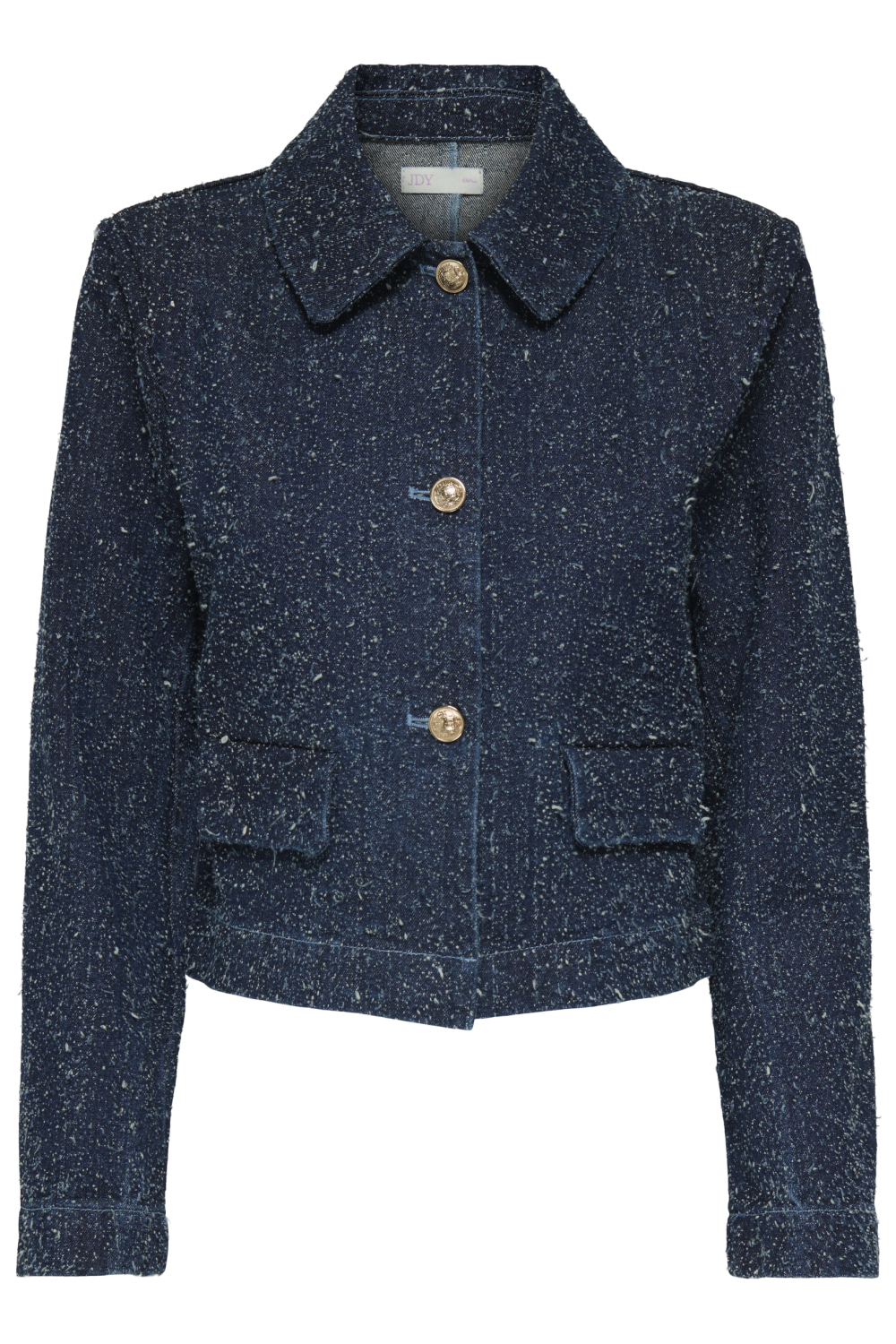 Deze stijlvolle donkerblauwe denim jas van Jacqueline de Yong is een onmisbare toevoeging aan je herfstgarderobe. Gemaakt van 100% katoen, biedt de jas een comfortabele regular fit die perfect aansluit op verschillende lichaamstypen. De jas heeft een klassieke puntkraag en een knoopsluiting met opvallende goudkleurige knopen, wat zorgt voor een verfijnde look. De kortere lengte maakt het een veelzijdig stuk dat zowel casual als elegant gedragen kan worden.