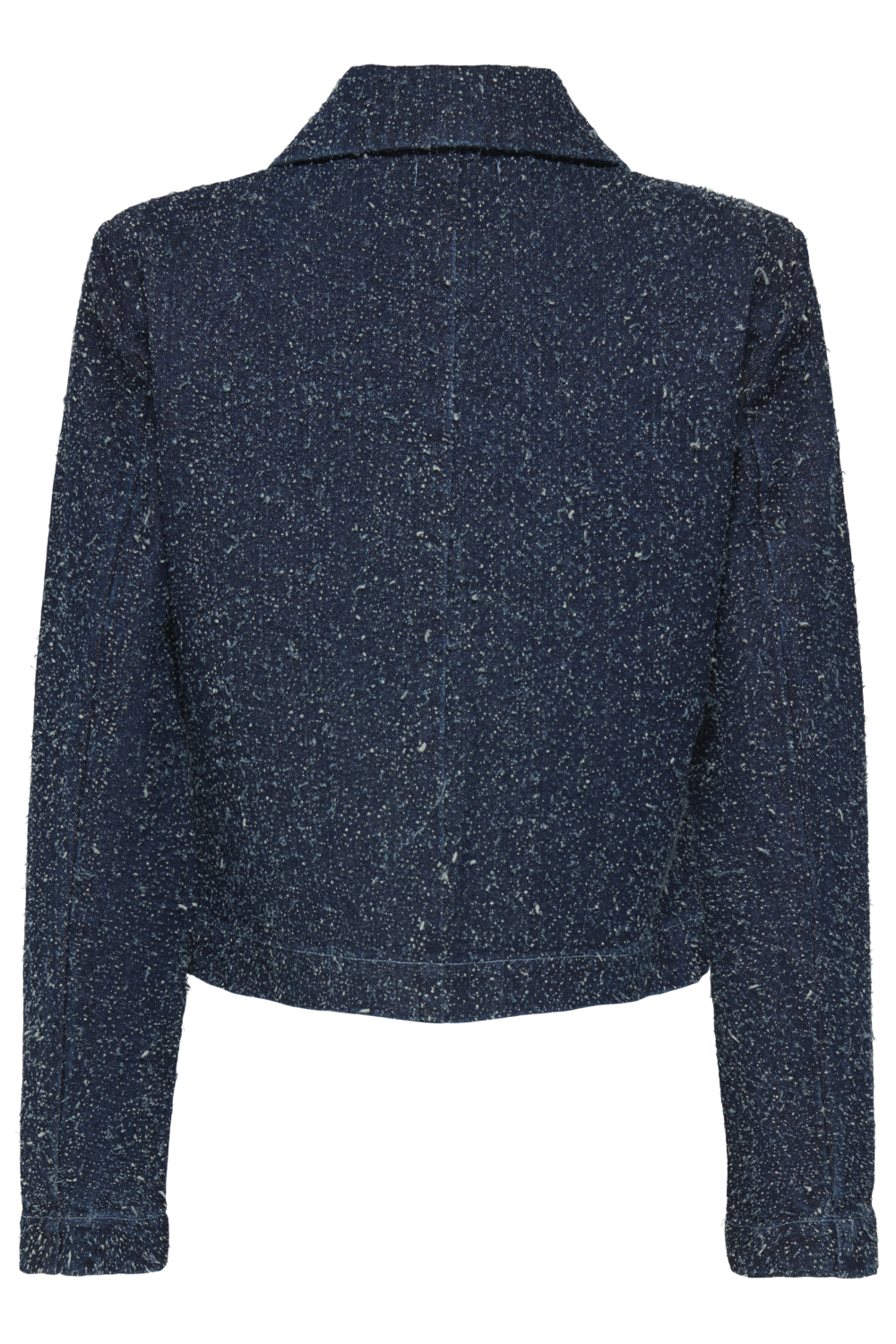 Dankzij de structuur in de stof heeft deze jas een unieke uitstraling die perfect is voor diverse gelegenheden. Of je nu een dagelijkse wandeling maakt of een informeel avondje uit plant, deze denim jas past bij elke outfit. Combineer met een eenvoudige jeans voor een klassieke look of draag het over een jurk voor een chic contrast. De lange mouwen zorgen ervoor dat je warm blijft op koelere dagen, terwijl de diepblauwe kleur makkelijk te combineren is met verschillende kleuren en stijlen. Met deze jas voeg je een stijlvolle en praktische touch toe aan elk ensemble.