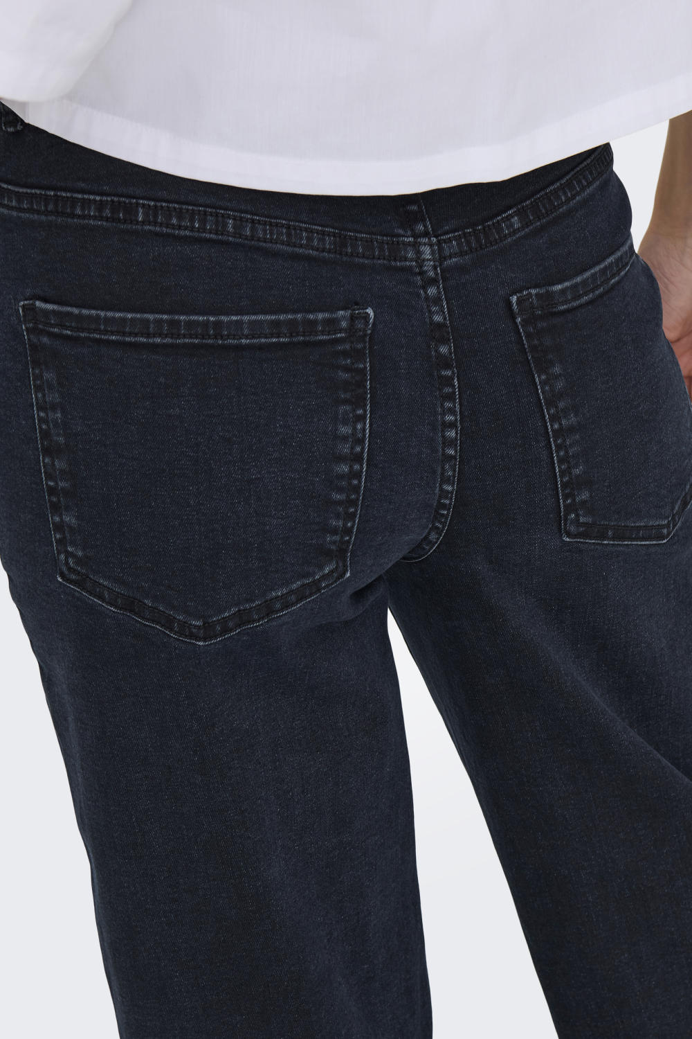 Deze stijlvolle Jacqueline de Yong blue black denim jeans is een tijdloze aanvulling op je wintergarderobe. Met een high waist en wide leg pasvorm biedt deze jeans niet alleen comfort, maar ook een moderne uitstraling. De rinsewash maakt het geheel eigentijds, terwijl de 5-pocket styling een praktische touch toevoegt. Een klassieke knoop- en ritssluiting zorgen voor een eenvoudige pasvorm die de jeans veelzijdig en makkelijk te combineren maakt. Dankzij het normale lengteontwerp en de denim stijl is deze jeans perfect voor verschillende gelegenheden. Of je nu een dag op kantoor doorbrengt of een avondje uitgaat, deze jeans past altijd. Combineer met een nette blouse voor een zakelijke look of met een casual top voor een ontspannen dag. Deze jeans biedt een fijne balans tussen mode en functionaliteit, een ideaal kledingstuk voor iedere dame die houdt van een stijlvolle maar comfortabele outfit.