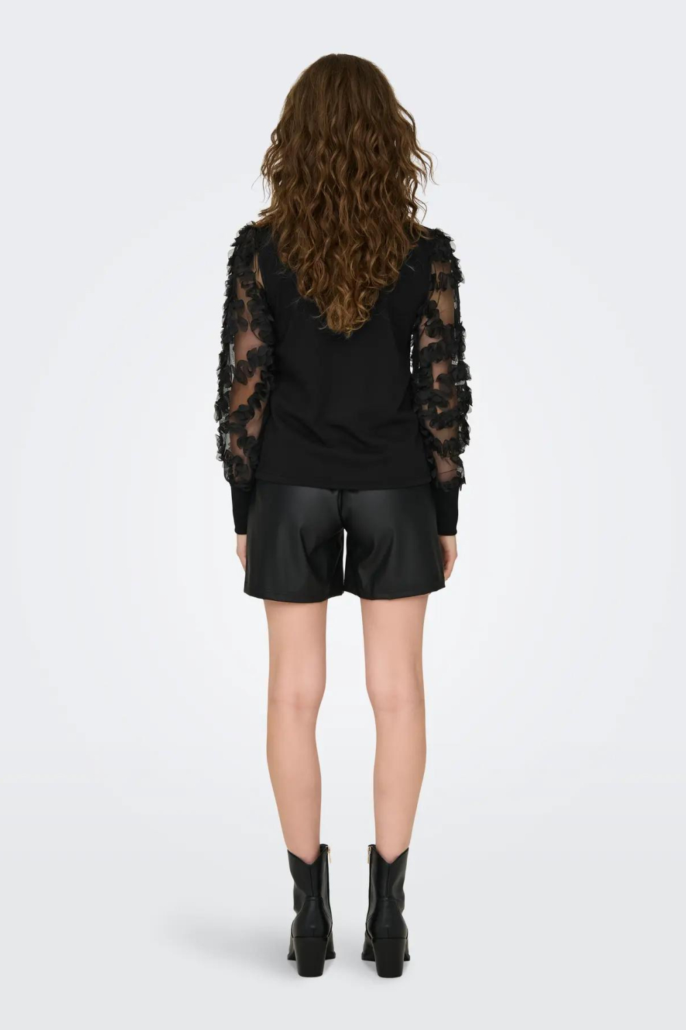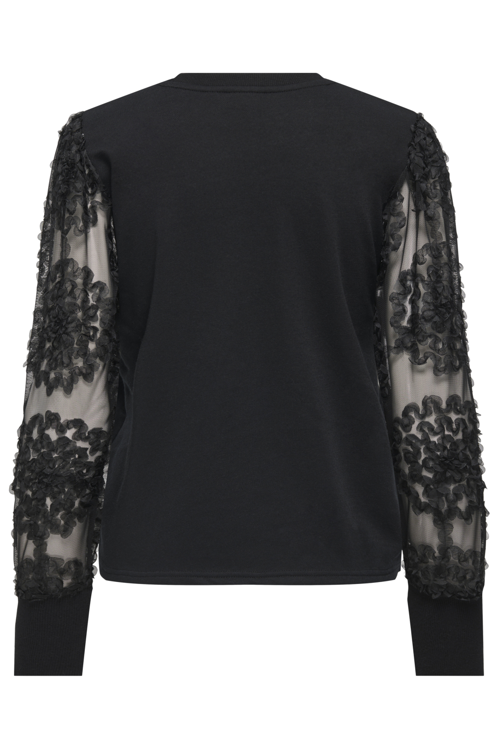 Deze stijlvolle zwarte sweater van Jacqueline de Yong is een veelzijdige aanvulling op je collectie. Het kledingstuk heeft een regular fit en is gemaakt van een duurzame mix van 65% gerecycled polyester en 35% katoen, wat zorgt voor een comfortabele en zachte feel. De ronde hals en normale lengte maken het tot een gemakkelijk te combineren stuk. Wat dit kledingstuk echt bijzonder maakt, zijn de unieke mouwen van doorschijnende stof met opvallende 3D-structuur accenten, die een speelse maar toch elegante uitstraling geven.