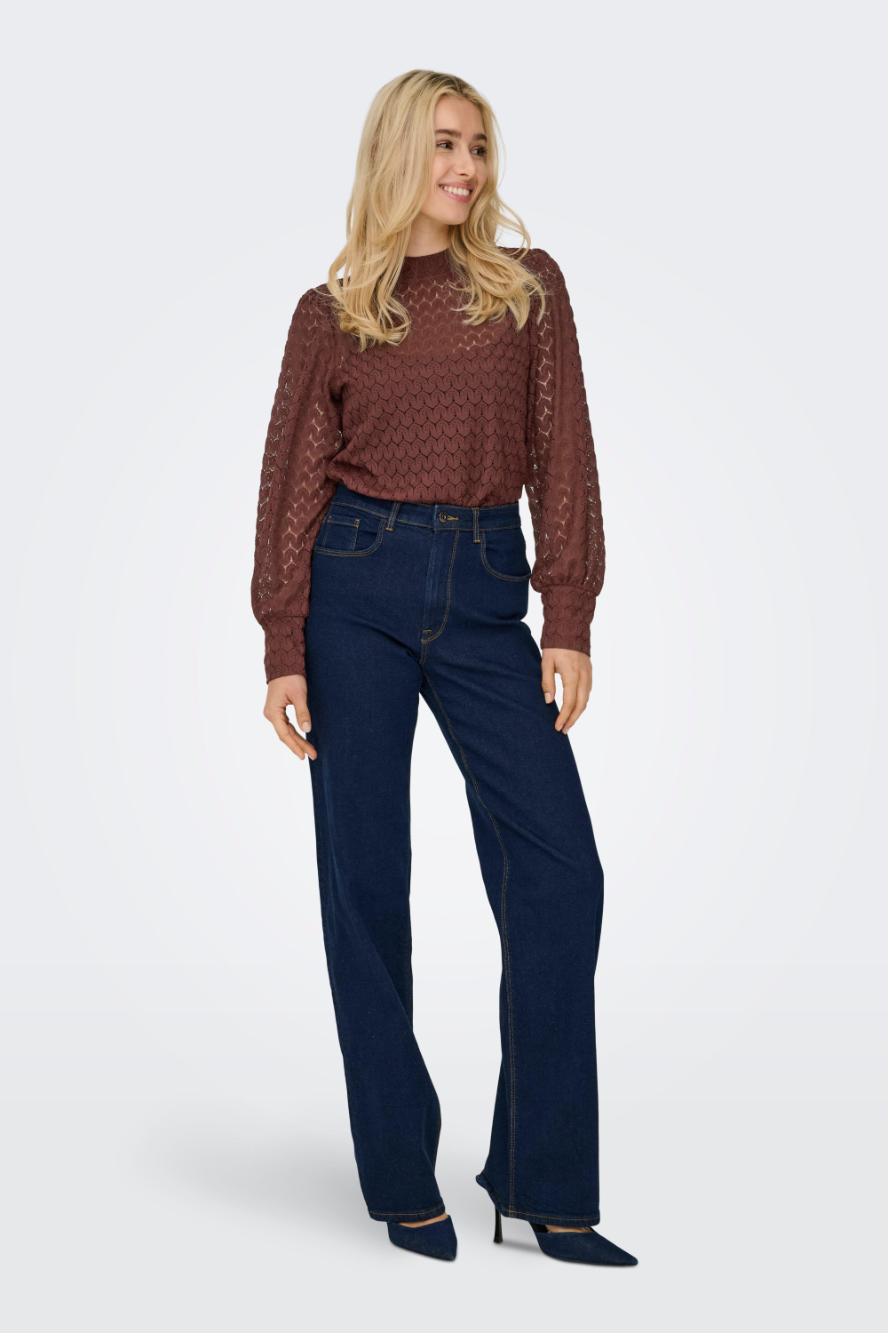 Dankzij de knoopsluiting aan de achterkant voeg je moeiteloos een verfijnd detail toe aan je outfit. Het rijke kant geeft het geheel een vrouwelijke uitstraling, waardoor het een veelzijdige aanvulling is op je wintergarderobe. Of je nu een dagje naar kantoor gaat of een avondje uit plant, dit Jacqueline de Yong T-shirt past perfect bij diverse stijlen en gelegenheden. Combineer het met laarzen en accessoires voor een complete look.