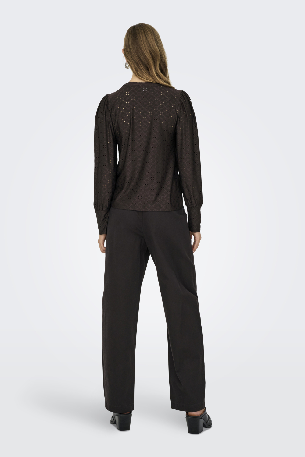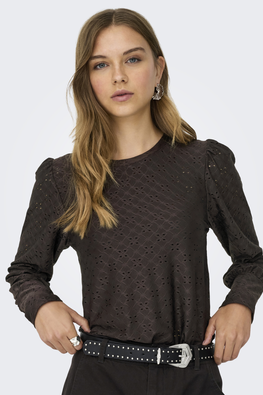 Dit elegante T-shirt van Jacqueline de Yong is een stijlvolle toevoeging aan je garderobe. Gemaakt van 92% polyester en 8% elastan, biedt het een comfortabele fit met een vleugje stretch. De ajourpatroon en de chocoladebruine tint, genaamd 'Chocolate Torte', geven dit T-shirt een verfijnde uitstraling. De ronde halslijn en lange mouwen dragen bij aan de klassieke look, terwijl de subtiele plooien op de schouders zorgen voor een chique detail. Dankzij de casual stijl is het ideaal voor dagelijkse activiteiten in de winter. Combineer het met een comfortabele jeans voor een relaxte look, of draag het onder een blazer voor een meer geklede gelegenheid. De normale lengte zorgt ervoor dat het zowel in combinatie met een rok als een broek prachtig staat. Of je nu naar een lunchafspraak gaat of gewoon een dagje thuis doorbrengt, dit T-shirt is een veelzijdige keuze die je makkelijk kunt stylen.
