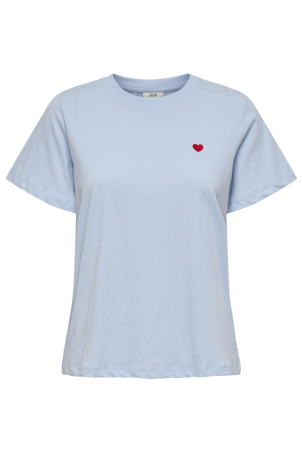 Dit dames T-shirt van Jacqueline de Yong biedt een casual uitstraling die je eenvoudig aan je dagelijkse garderobe toevoegt. Gemaakt van 100% katoen, voelt het zacht aan op de huid en zorgt het voor optimaal draagcomfort. Het T-shirt heeft een regular pasvorm die moeiteloos aansluit op elke lichaamsvorm. De subtiele ronde hals en korte mouwen maken het geschikt voor uiteenlopende gelegenheden, van een ontspannen dag thuis tot een informele afspraak met vrienden. Wat dit T-shirt echt bijzonder maakt, is het charmante hartjespatroon dat een speelse twist geeft aan het effen ontwerp. Met zijn zachte blauwe tint en rode hartje op de borst voegt het net dat beetje extra flair toe aan je dagelijkse outfits. Perfect combineerbaar met jeans of een relaxte rok, is dit T-shirt een veelzijdige keuze voor zowel binnen als buiten de deur. Ideaal voor in de winter om als laagje te dragen of gewoon alleen tijdens milde dagen.