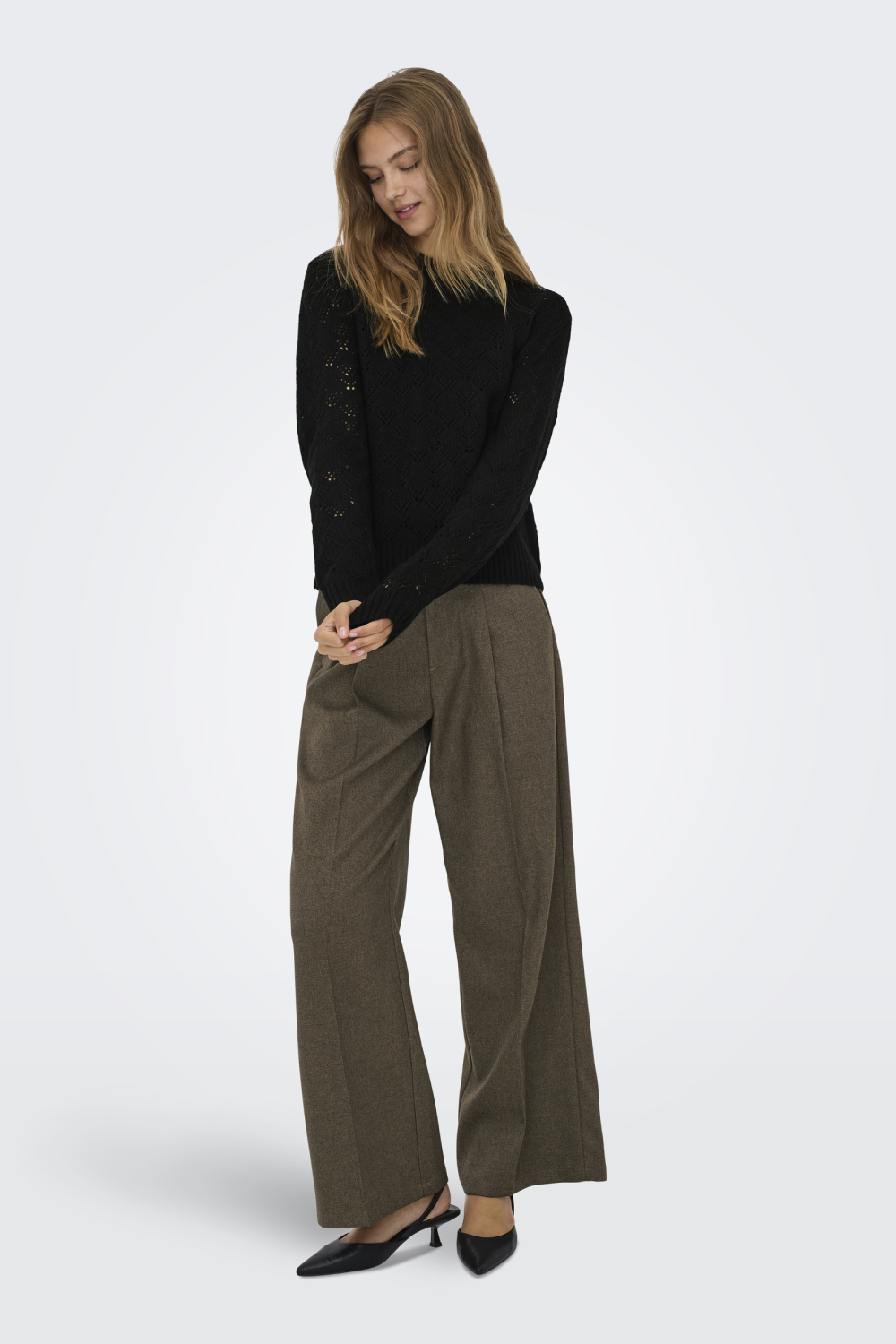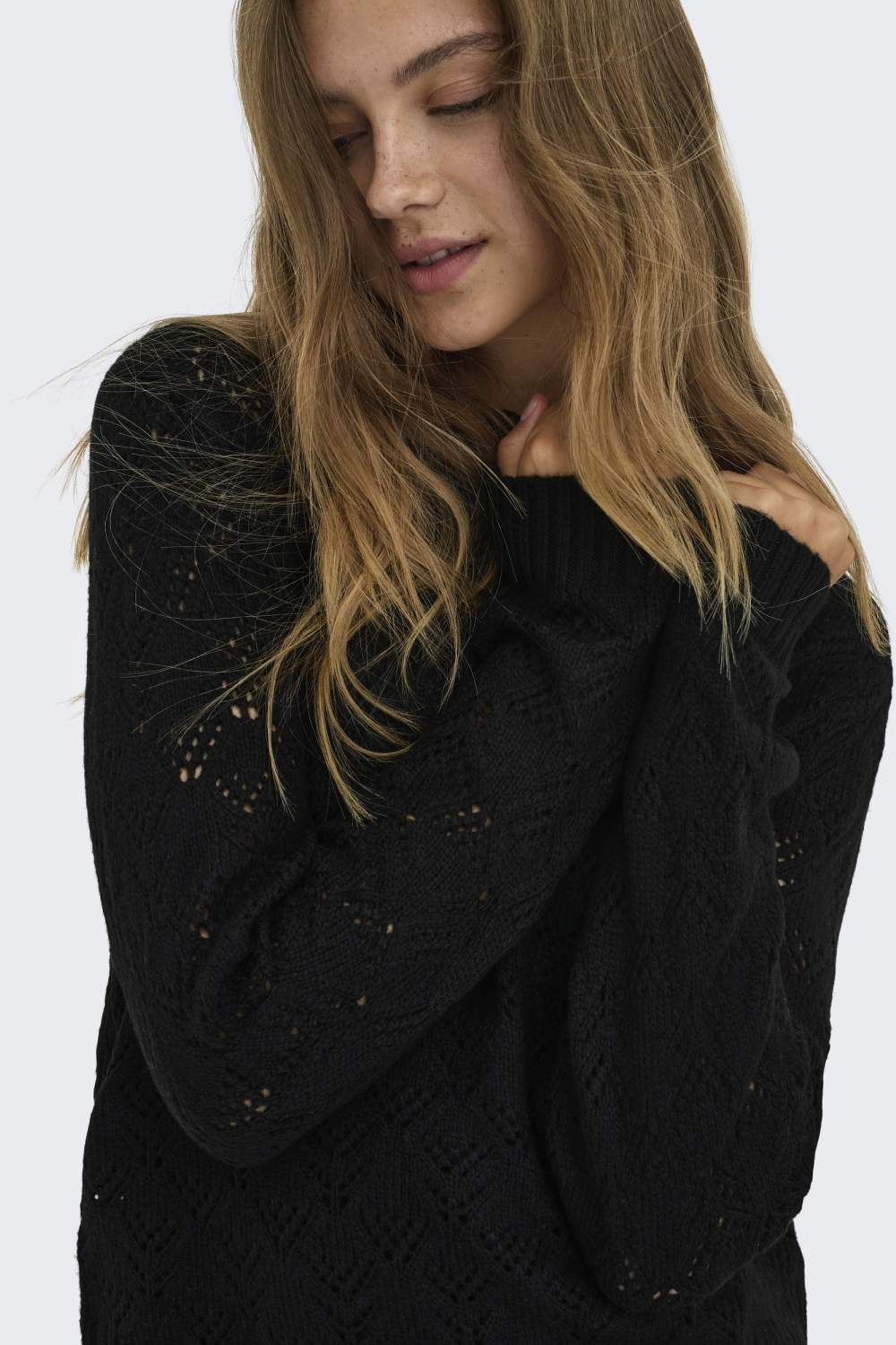 Deze stijlvolle zwarte trui van Jacqueline de Yong is een onmisbare aanvulling op je wintergarderobe. Met zijn comfortabele regular fit en ajourpatroon biedt deze trui een subtiele twist aan je alledaagse look. De ronde hals en lange mouwen zorgen voor een klassieke uitstraling, terwijl het materiaal van 80% polyester en 20% acryl je een warme, maar ademende ervaring geeft tijdens koude dagen. Of je nu een dag op kantoor doorbrengt of een ontspannen weekend hebt, deze trui is een veelzijdige keuze. De normale lengte maakt het gemakkelijk te combineren met zowel een jeans als een nette pantalon. Dankzij de duurzame samenstelling is deze trui niet alleen een goede keuze voor dit seizoen, maar ook een investering voor de toekomst. Perfect voor elke situatie waar een stijlvolle maar comfortabele outfit gewenst is.