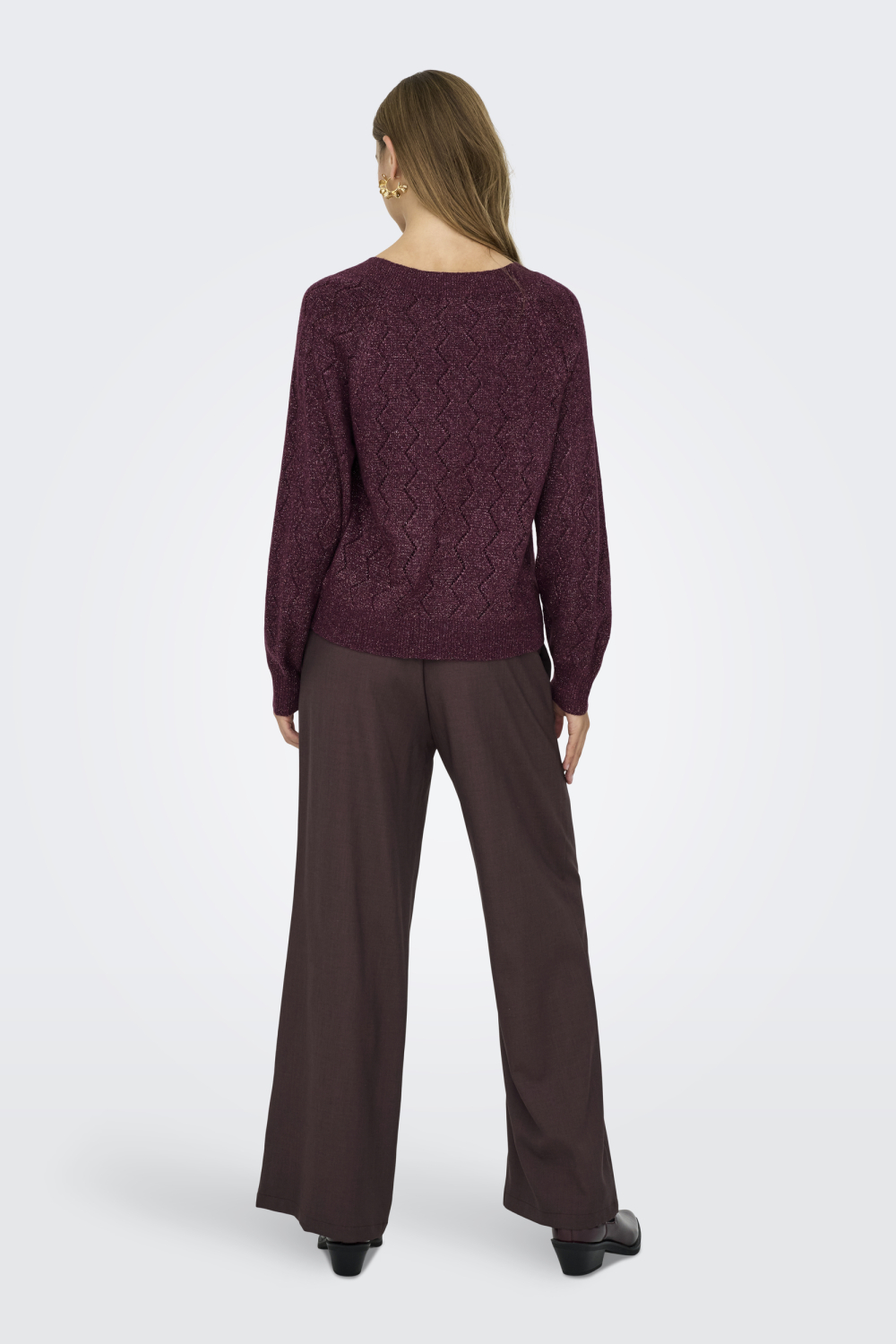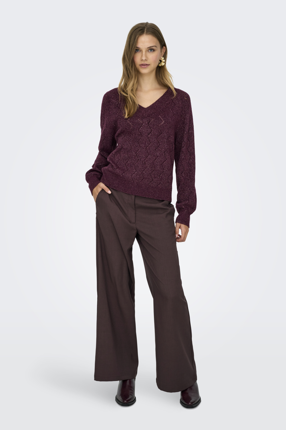 De Jacqueline de Yong trui is een stijlvolle aanwinst voor je wintergarderobe. Deze regular fit knitwear, met een rijke paarse tint en subtiele glitters, voegt een elegante touch toe aan elke outfit. De V-hals en het speelse patroon maken deze trui zowel veelzijdig als tijdloos. De lange mouwen en normale lengte zorgen voor extra comfort, ideaal voor koude dagen. Perfect voor diverse gelegenheden, of je nu een casual dag op het werk hebt of een avondje uit plant. Combineer de trui met een nette pantalon voor een formele look of kies een comfortabele jeans voor een meer ontspannen stijl. Het zachte materiaal en de mooie afwerking maken het een duurzame keuze voor elke modebewuste vrouw. Geniet van een modieuze uitstraling met deze veelzijdige Jacqueline de Yong trui.