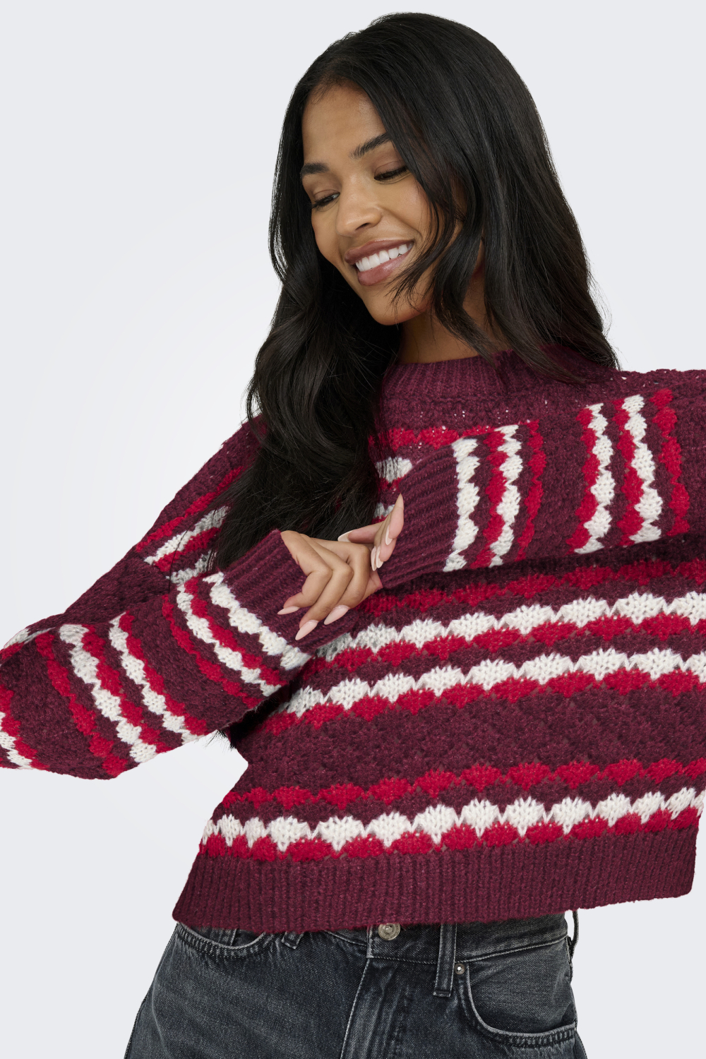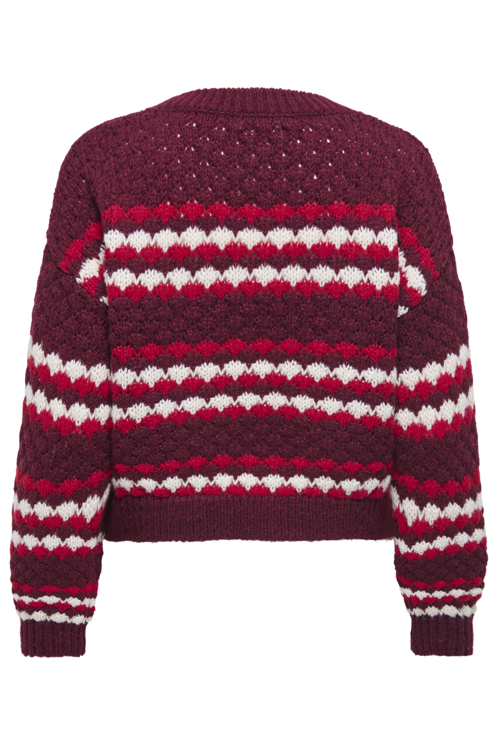 Deze stijlvolle trui van Jacqueline de Yong is een verfijnde toevoeging aan je herfstgarderobe. Gemaakt van een mix van 50% polyester en 50% gerecycled polyester, combineert deze trui duurzaamheid met comfort. De regular fit zorgt voor een casual uitstraling, terwijl de warme, bordeauxrode tint gecombineerd met witte en rode streeppatronen een speels accent geven. De ronde hals maakt de trui makkelijk te combineren met zowel een colbert voor een ontspannen, zakelijke look als met je favoriete jeans voor een relaxte middag met vrienden. Dankzij de lange mouwen en de normale lengte is de trui ideaal voor de koelere dagen in het jaar. De trui straalt eenvoud en stijl uit en past perfect bij verschillende gelegenheden. Of je nu op zoek bent naar iets om te dragen tijdens een weekenduitstapje of om een dag op kantoor door te brengen, deze trui biedt de juiste mix van comfort en stijl. Het streepdesign voegt net dat beetje extra flair toe, waarmee je altijd goed voor de dag komt.