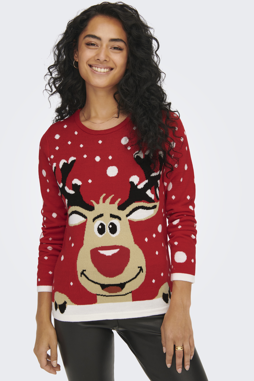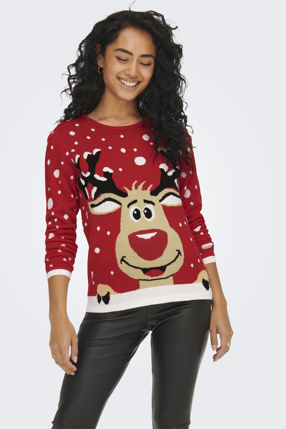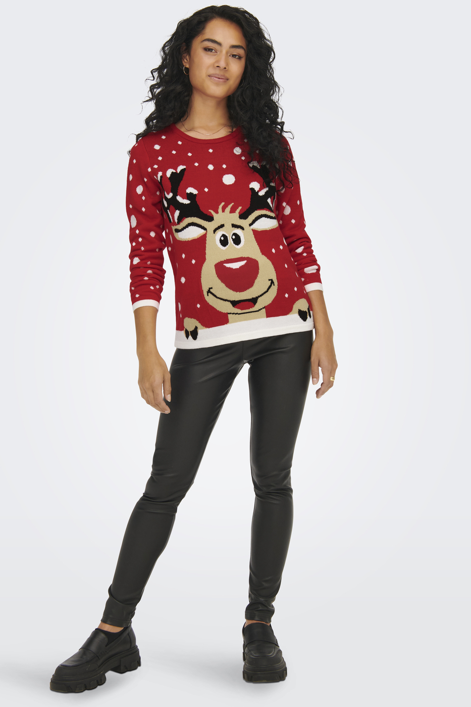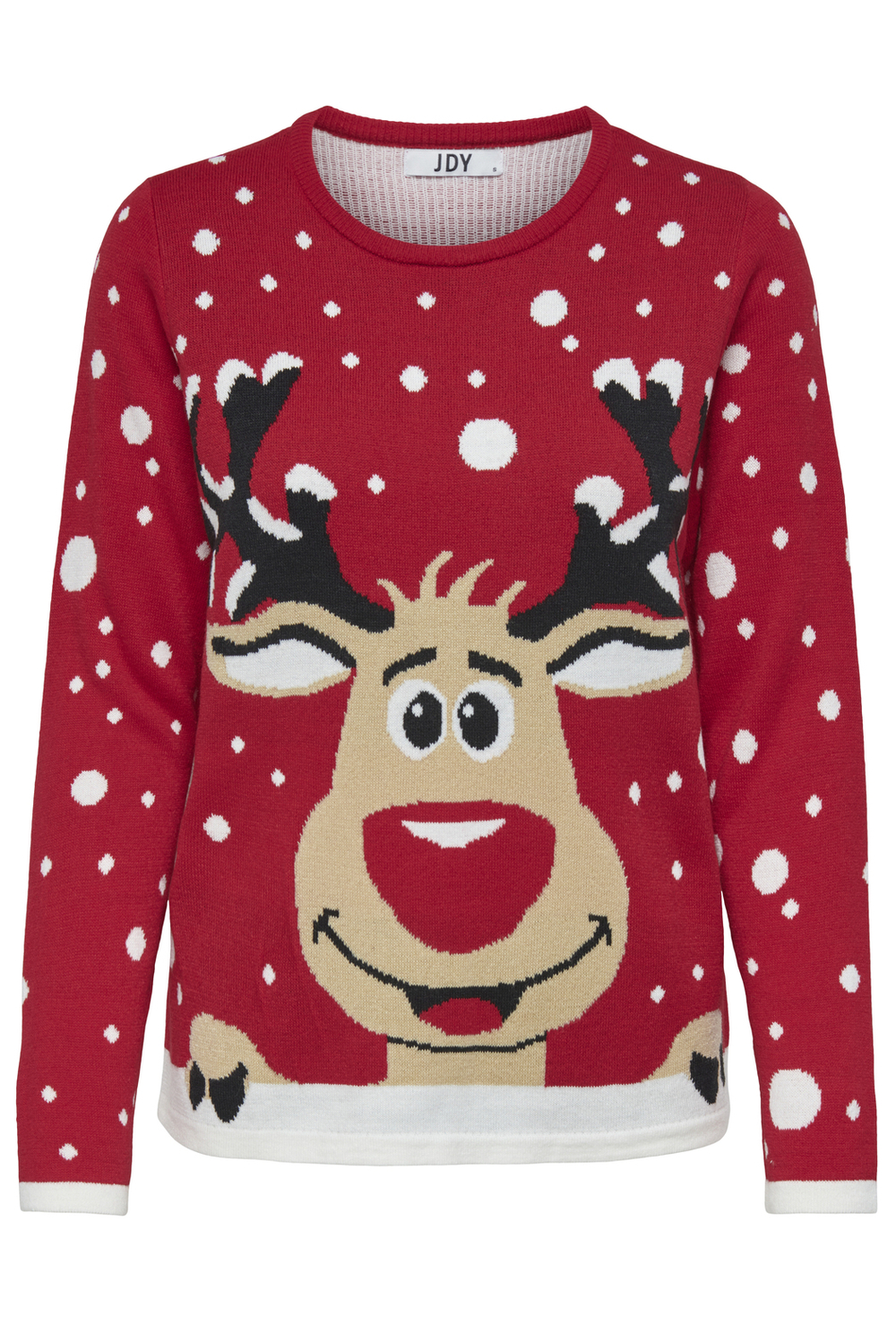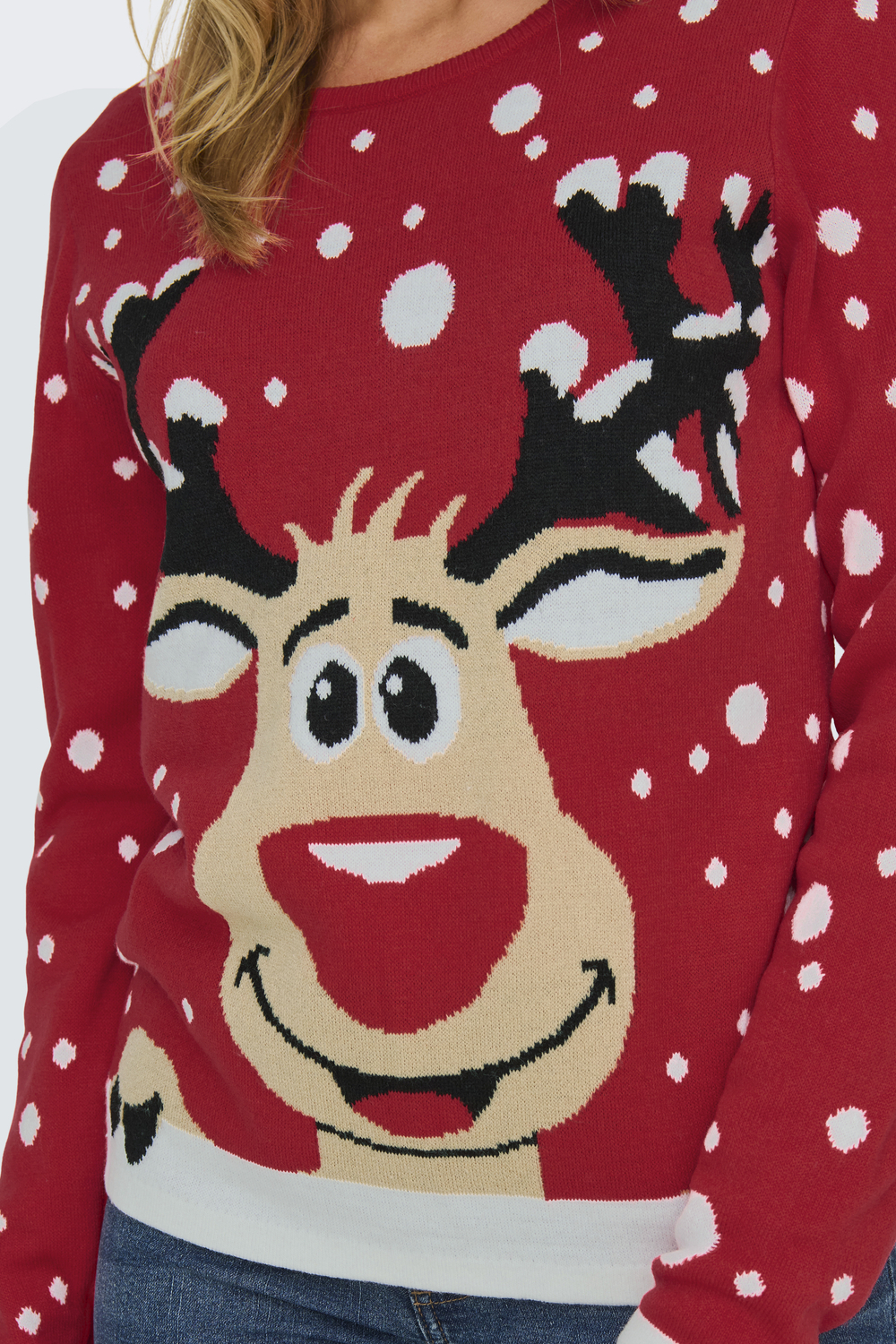 Kersttrui van JDY met lange mouwen en een ronde hals. Dit gebreide model heeft een rendier op de voorkant.