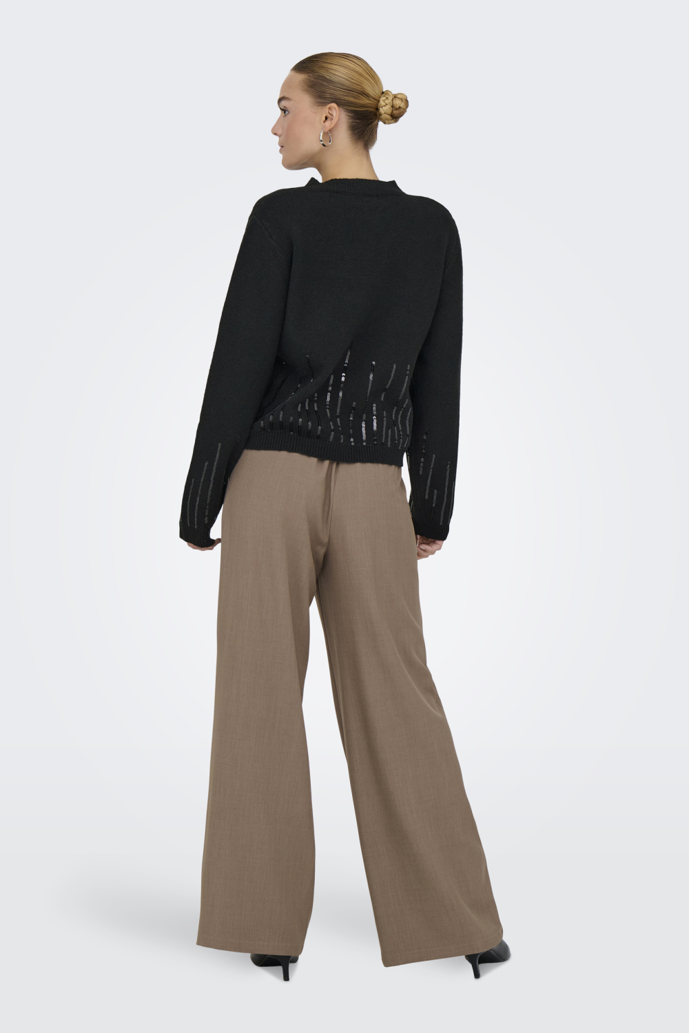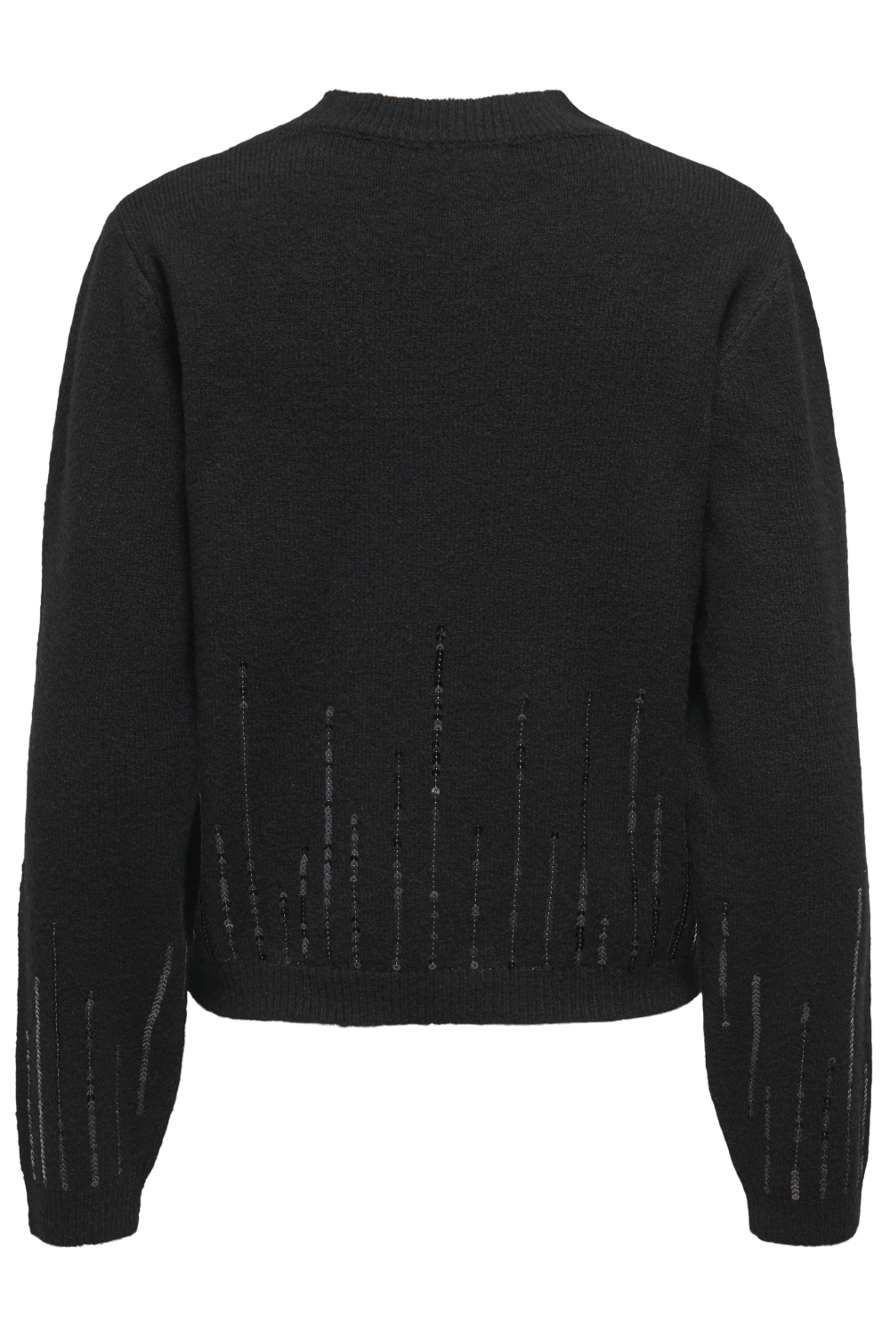 Deze stijlvolle zwarte trui van Jacqueline de Yong is een elegante toevoeging aan je wintergarderobe. Ontworpen voor dames, biedt deze regular fit trui een perfecte balans tussen comfort en stijl. Gemaakt van 82% gerecycled polyester, 15% acryl en 3% elastan, voelt de stof zacht aan op de huid en zorgt het voor een duurzame keuze. De sprankelende paillettenpatronen op de mouwen en voorkant geven een subtiele glans, ideaal voor een avondje uit of een feestelijke gelegenheid.