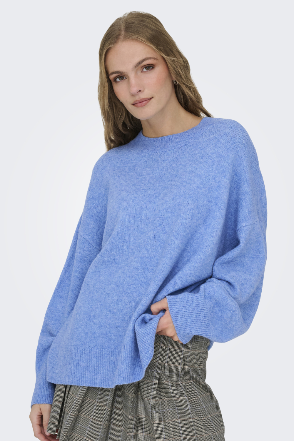 Deze gemêleerde trui van Jacqueline de Yong is een stijlvolle en comfortabele toevoeging aan jouw garderobe. Gemaakt van een zachte knitwear stof, in de betoverende "Provence" kleur, biedt deze trui een geruststellend draagcomfort voor elke dag. De ronde hals en de lange mouwen maken het een veelzijdig kledingstuk, geschikt voor zowel koudere als mildere dagen. Dankzij de regular fit voel je je de hele dag comfortabel, of je nu thuis ontspant of onderweg bent. Het tijdloze ontwerp van deze Jacqueline de Yong trui past perfect in verschillende settings. Combineer hem met een broek voor een casual look op een relaxte dag of stijl hem met een rok voor een wat formelere gelegenheid. Zijn normale lengte en gemêleerde patroon zorgen voor een subtiel speelse touch, waardoor je altijd stijlvol voor de dag komt. Of je nu een paar boodschappen gaat doen of een dag op kantoor doorbrengt, deze trui is een betrouwbare keuze die je graag uit de kast trekt.